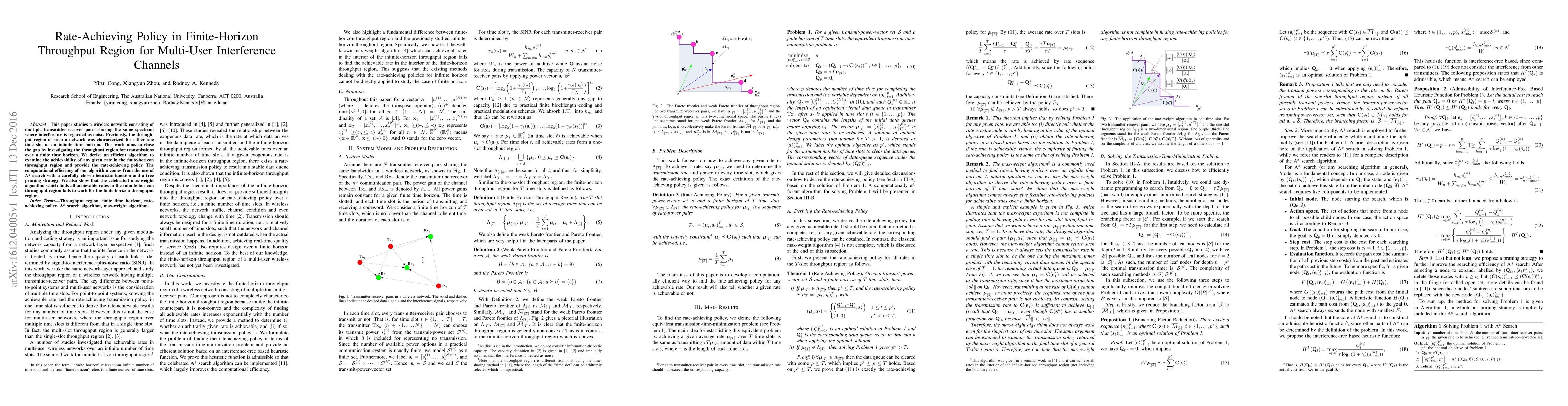 This paper studies a wireless network consisting of multiple transmitter-receiver pairs sharing the same spectrum where interference is regarded as noise. Previously, the throughput region of such a network was characterized for either one time slot or an infinite time horizon. This work aims to close the gap by investigating the throughput region for transmissions over a finite time horizon. We derive an efficient algorithm to examine the achievability of any given rate in the finite-horizon throughput region and provide the rate-achieving policy. The computational efficiency of our algorithm comes from the use of A* search with a carefully chosen heuristic function and a tree pruning strategy. We also show that the celebrated max-weight algorithm which finds all achievable rates in the infinite-horizon throughput region fails to work for the finite-horizon throughput region.