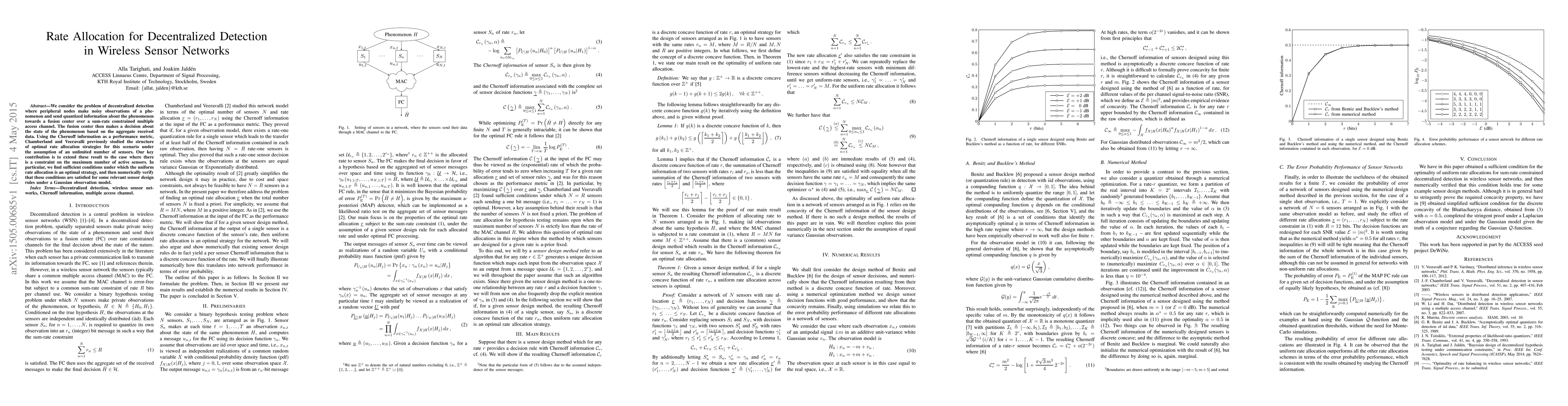 We consider the problem of decentralized detection where peripheral nodes make noisy observations of a phenomenon and send quantized information about the phenomenon towards a fusion center over a sum-rate constrained multiple access channel. The fusion center then makes a decision about the state of the phenomenon based on the aggregate received data. Using the Chernoff information as a performance metric, Chamberland and Veeravalli previously studied the structure of optimal rate allocation strategies for this scenario under the assumption of an unlimited number of sensors. Our key contribution is to extend these result to the case where there is a constraint on the maximum number of active sensors. In particular, we find sufficient conditions under which the uniform rate allocation is an optimal strategy, and then numerically verify that these conditions are satisfied for some relevant sensor design rules under a Gaussian observation model.