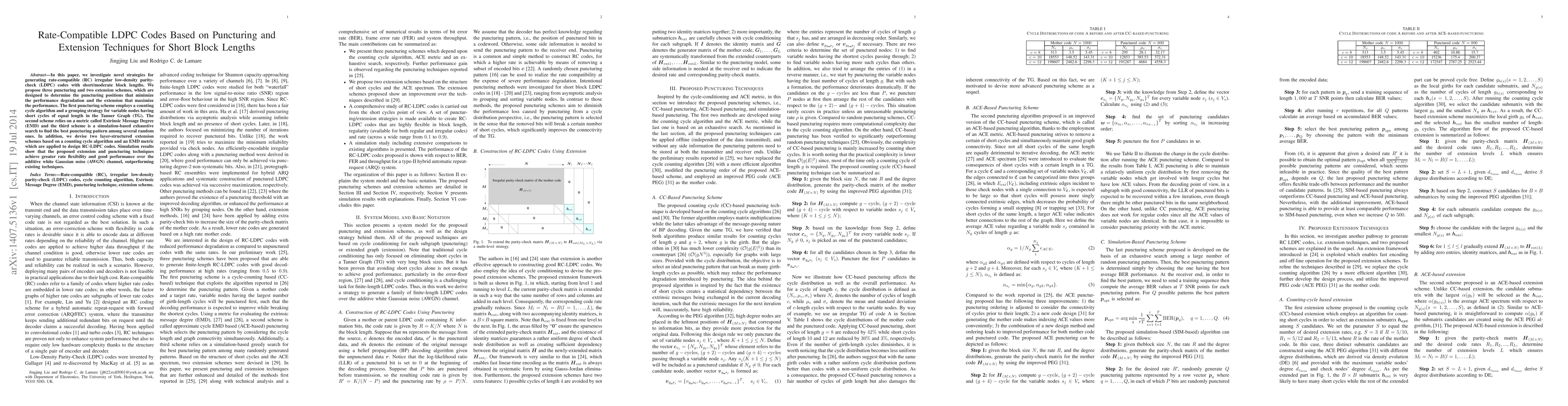 Researchers propose novel puncturing and extension techniques for rate-compatible LDPC codes with short block lengths, achieving greater rate flexibility and good performance over AWGN channels, outperforming existing methods.