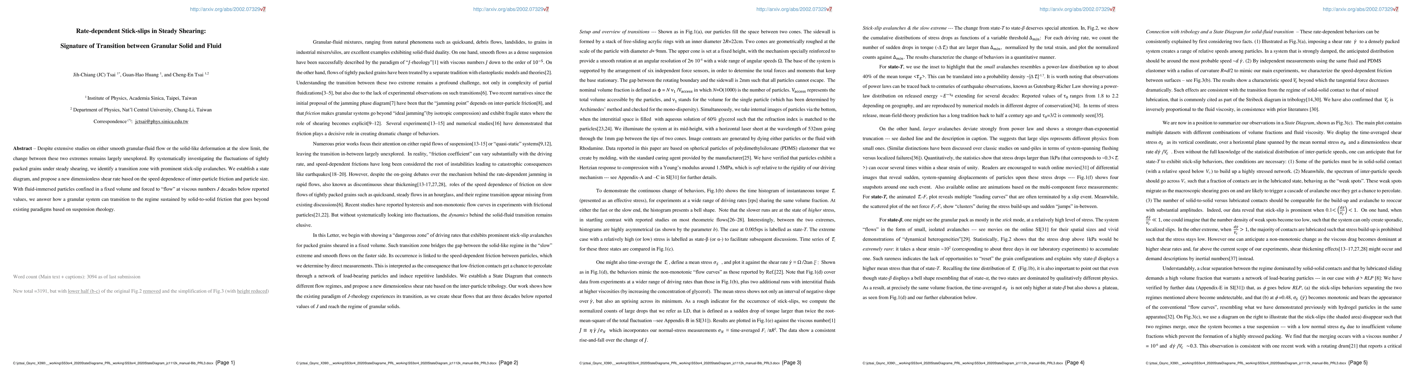 This study investigates the transition zone between granular solid and fluid behavior under steady shearing, identifying stick-slip avalanches as a signature of this transition. The researchers propose a new dimensionless shear rate based on inter-particle friction and particle size, revealing how granular systems can shift to a regime dominated by solid-to-solid friction.