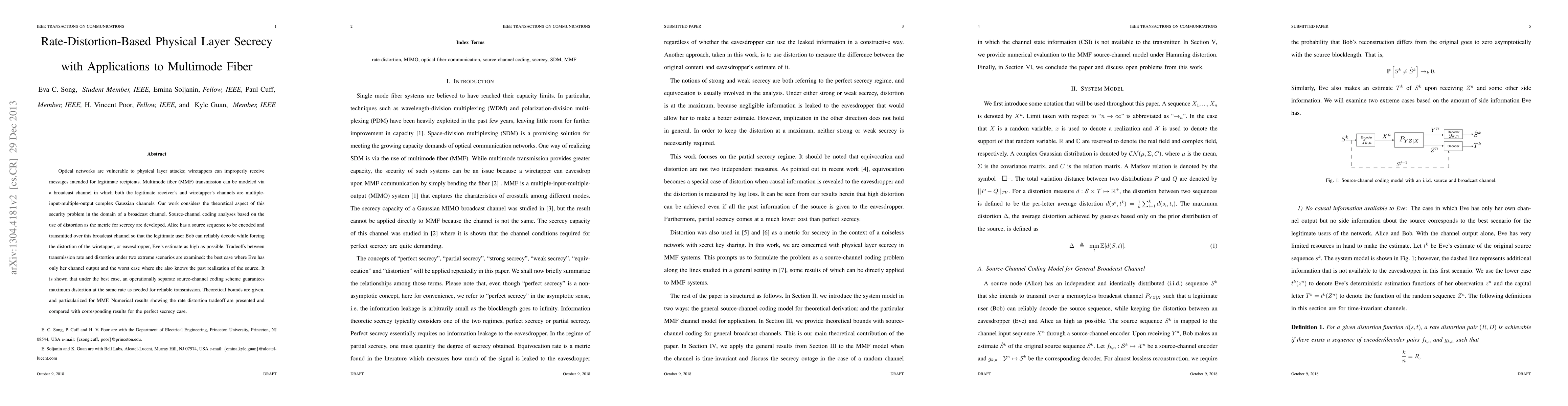 Research develops a rate-distortion-based approach to improve physical layer secrecy in multimode fiber transmission, showing that reliable transmission can coexist with high eavesdropper distortion.