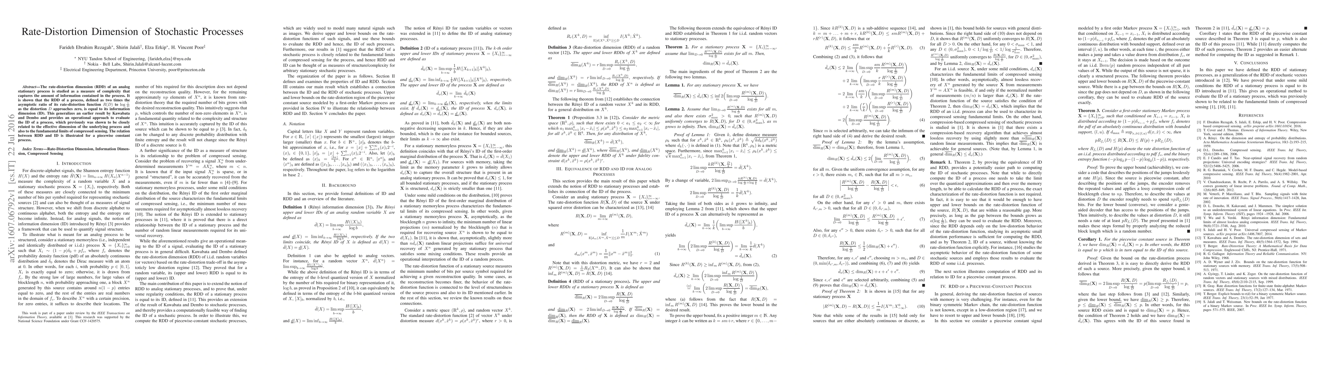 The rate-distortion dimension (RDD) of an analog stationary process is equal to its information dimension, providing a new measure of complexity that captures the amount of information contained in the process.