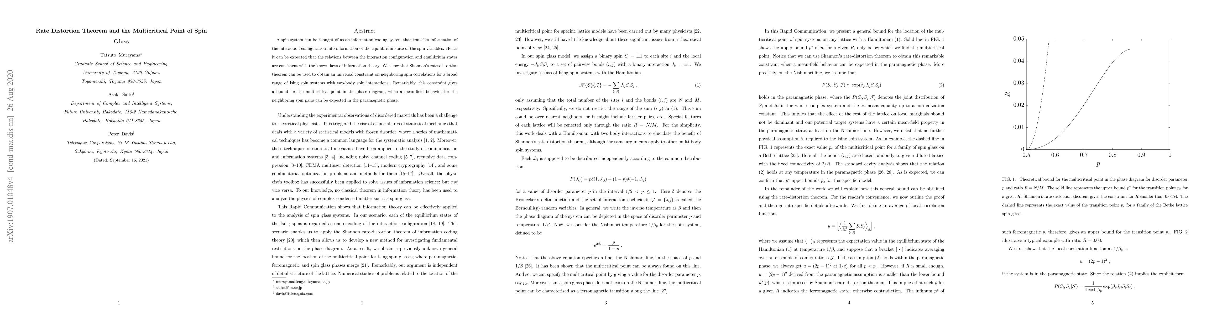 A spin system can be thought of as an information coding system that transfers information of the interaction configuration into information of the equilibrium state of the spin variables. Hence it can be expected that the relations between the interaction configuration and equilibrium states are consistent with the known laws of information theory. We show that Shannon's rate-distortion theorem can be used to obtain an universal constraint on neighboring spin correlations for a broad range of Ising spin systems with two-body spin interactions. Remarkably, this constraint gives a bound for the multicritical point in the phase diagram, when a mean-field behavior for the neighboring spin pairs can be expected in the paramagnetic phase.