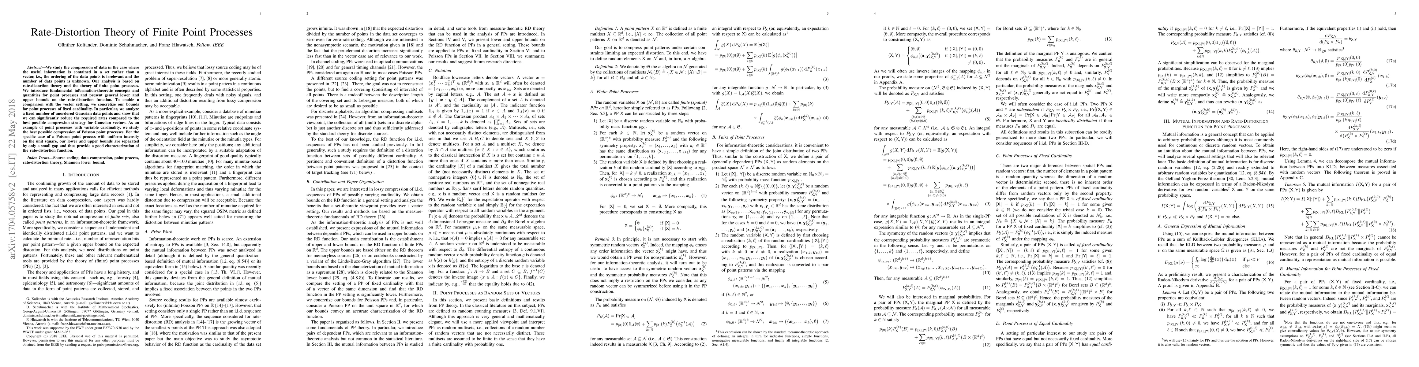 This paper explores the compression of data represented by unordered point sets using rate-distortion theory and finite point processes, introducing new information-theoretic concepts. It provides bounds for both fixed and variable cardinality point processes, notably showing significant rate reductions compared to Gaussian vectors for fixed cardinality.
