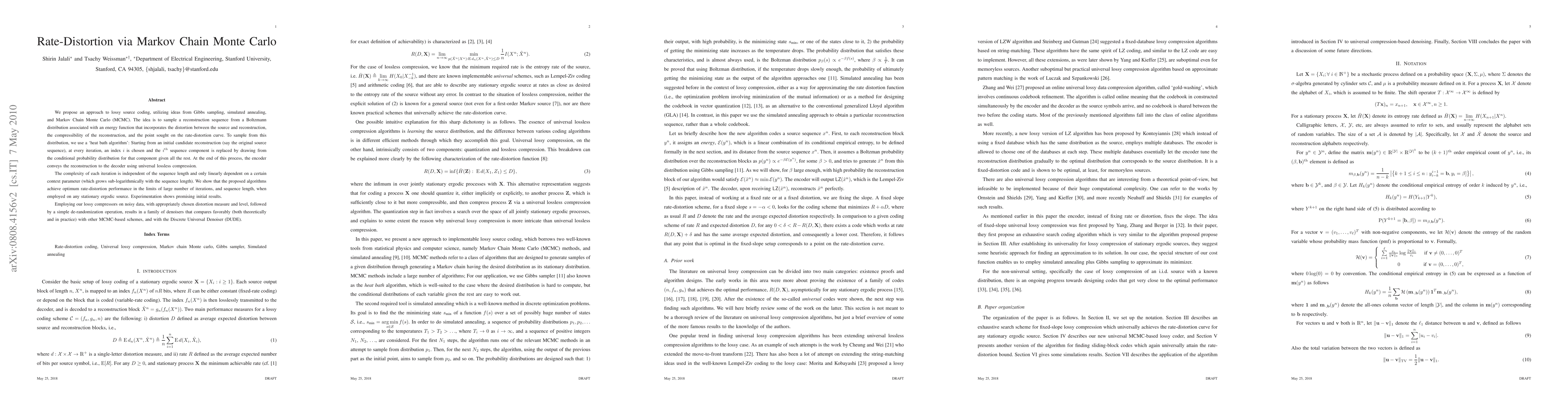 A new approach to lossy source coding uses Markov Chain Monte Carlo to find an optimal balance between data rate and distortion, outperforming existing methods in some cases.