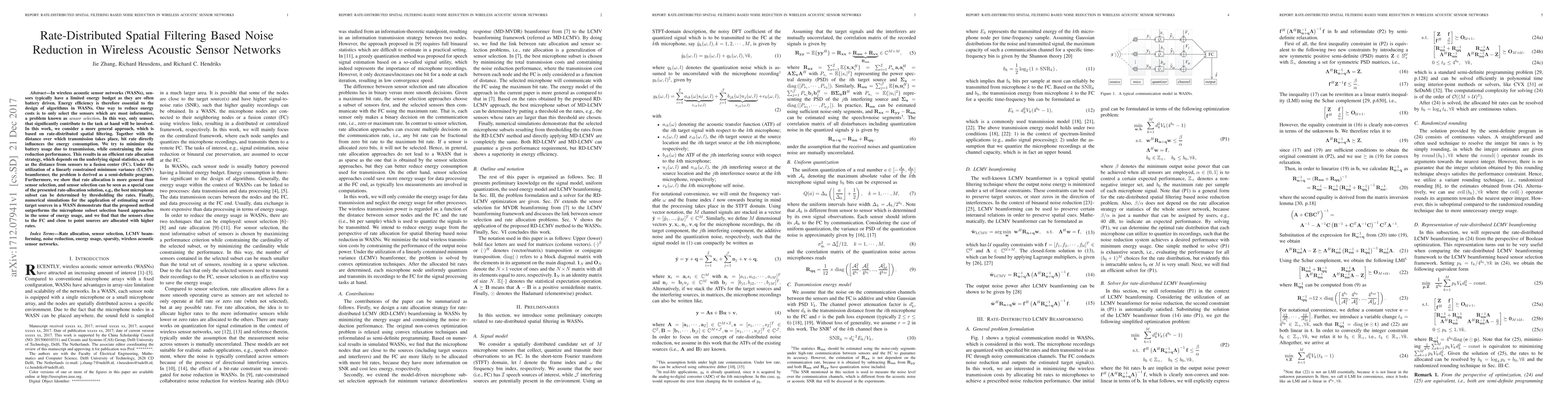 In wireless acoustic sensor networks (WASNs), sensors typically have a limited energy budget as they are often battery driven. Energy efficiency is therefore essential to the design of algorithms in WASNs. One way to reduce energy costs is to only select the sensors which are most informative, a problem known as {\it sensor selection}. In this way, only sensors that significantly contribute to the task at hand will be involved. In this work, we consider a more general approach, which is based on rate-distributed spatial filtering. Together with the distance over which transmission takes place, bit rate directly influences the energy consumption. We try to minimize the battery usage due to transmission, while constraining the noise reduction performance. This results in an efficient rate allocation strategy, which depends on the underlying signal statistics, as well as the distance from sensors to a fusion center (FC). Under the utilization of a linearly constrained minimum variance (LCMV) beamformer, the problem is derived as a semi-definite program. Furthermore, we show that rate allocation is more general than sensor selection, and sensor selection can be seen as a special case of the presented rate-allocation solution, e.g., the best microphone subset can be determined by thresholding the rates. Finally, numerical simulations for the application of estimating several target sources in a WASN demonstrate that the proposed method outperforms the microphone subset selection based approaches in the sense of energy usage, and we find that the sensors close to the FC and close to point sources are allocated with higher rates.
