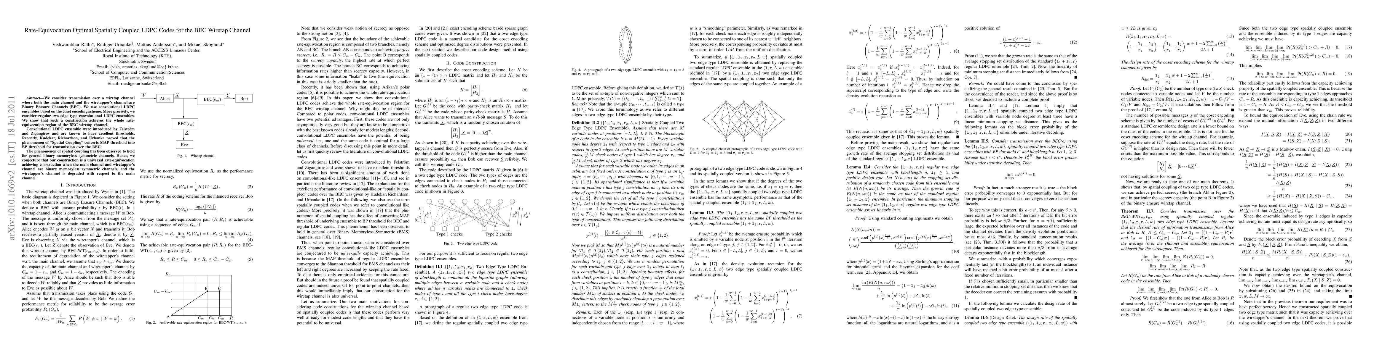 This paper proposes rate-equivocation optimal spatially coupled LDPC codes for the BEC wiretap channel, demonstrating that these codes achieve the entire rate-equivocation region. The authors leverage spatial coupling to convert MAP threshold into BP threshold, suggesting universal applicability to general binary memoryless symmetric channels.