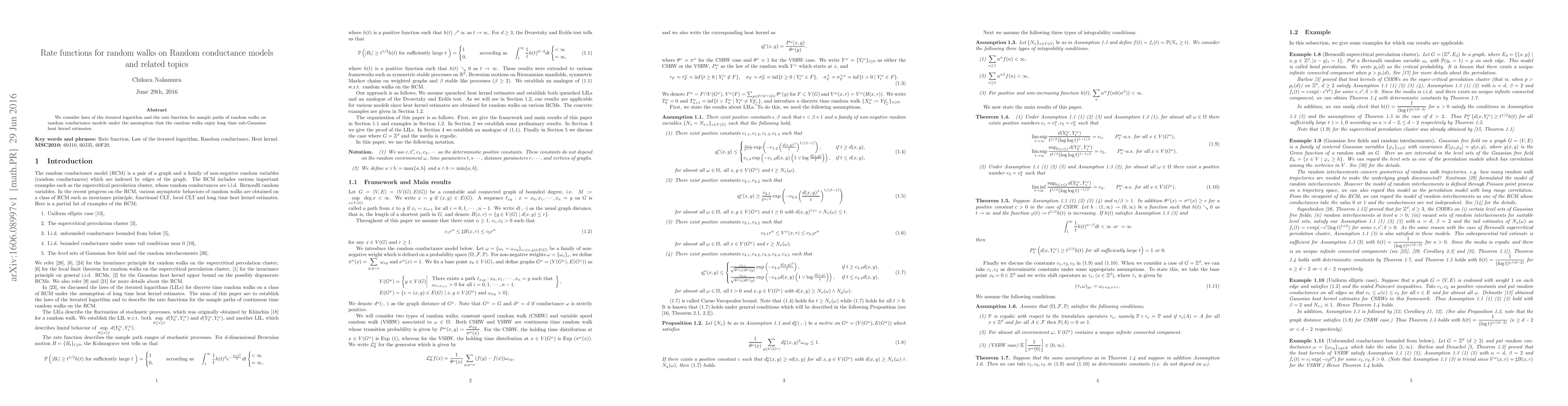 Summary: This paper investigates the laws of the iterated logarithm and the rate function for random walks on random conductance models, focusing on scenarios where the walks exhibit long-time sub-Gaussian heat kernel estimates. The study provides insights into the probabilistic behavior of these random walks.