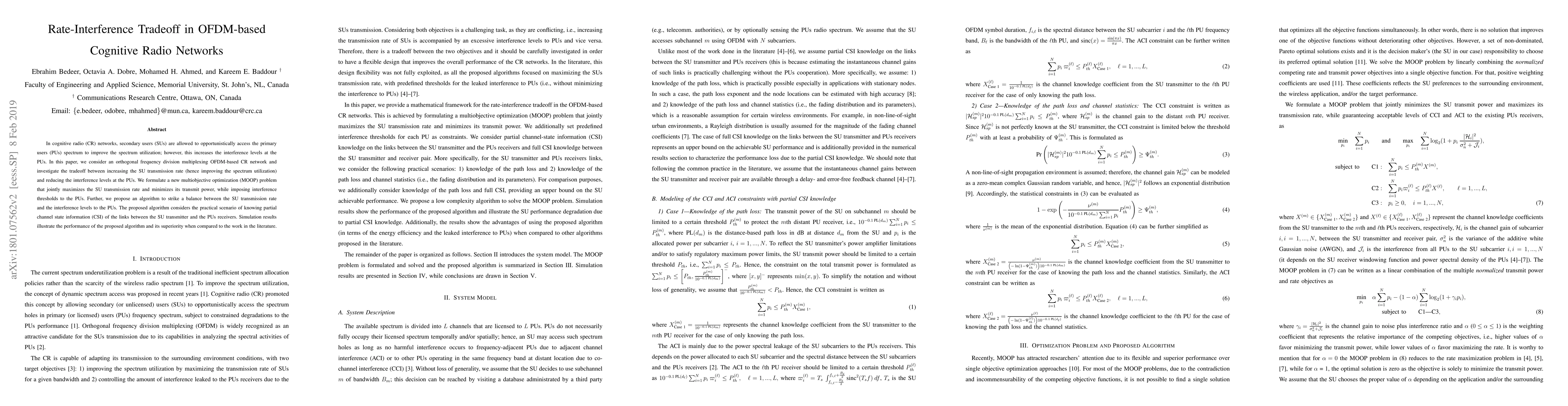 This paper investigates the rate-interference tradeoff in OFDM-based cognitive radio networks, formulating a multiobjective optimization problem to maximize SU transmission rate while minimizing interference to PUs. An algorithm is proposed to balance these objectives under partial channel state information, demonstrating superior performance in simulations.