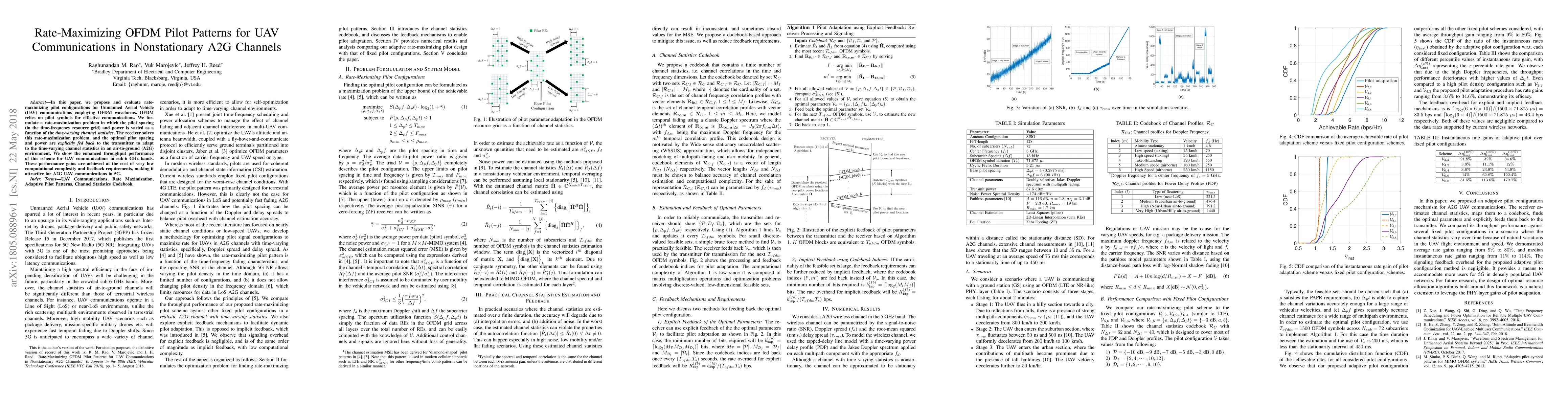 This paper proposes adaptive pilot configurations for OFDM-based UAV communications to maximize data rates in nonstationary air-to-ground channels. The method optimizes pilot spacing and power dynamically, achieving enhanced throughput with minimal computational complexity and feedback overhead, suitable for 5G applications.