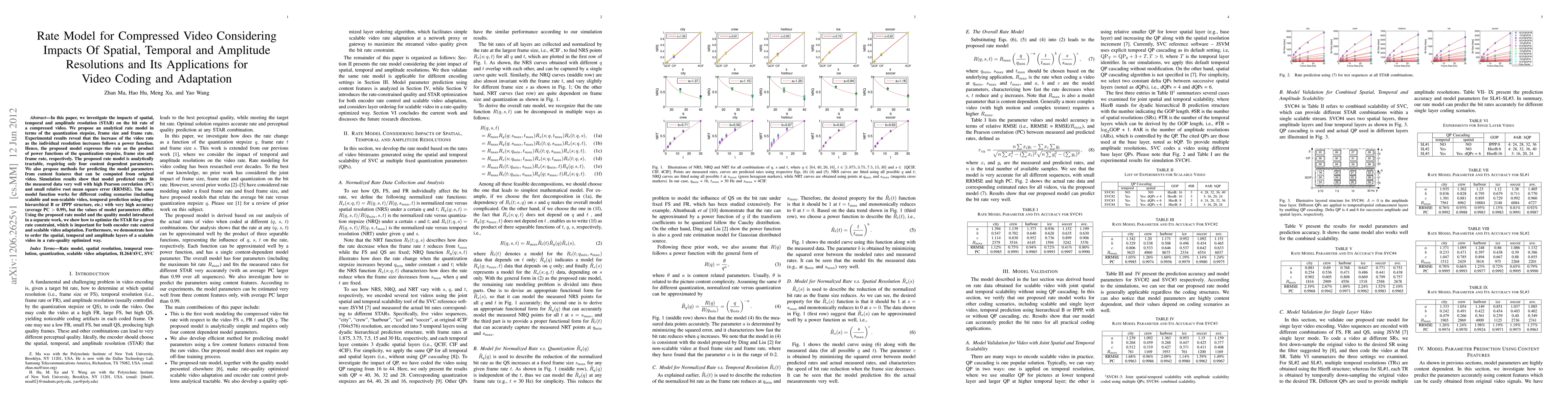 This paper proposes an analytical rate model for compressed video that considers spatial, temporal, and amplitude resolutions. The model expresses the bit rate as a product of power functions of quantization stepsize, frame size, and frame rate, and is shown to accurately predict rates across various coding scenarios. The model aids in optimizing video coding and adaptation for rate constraints.