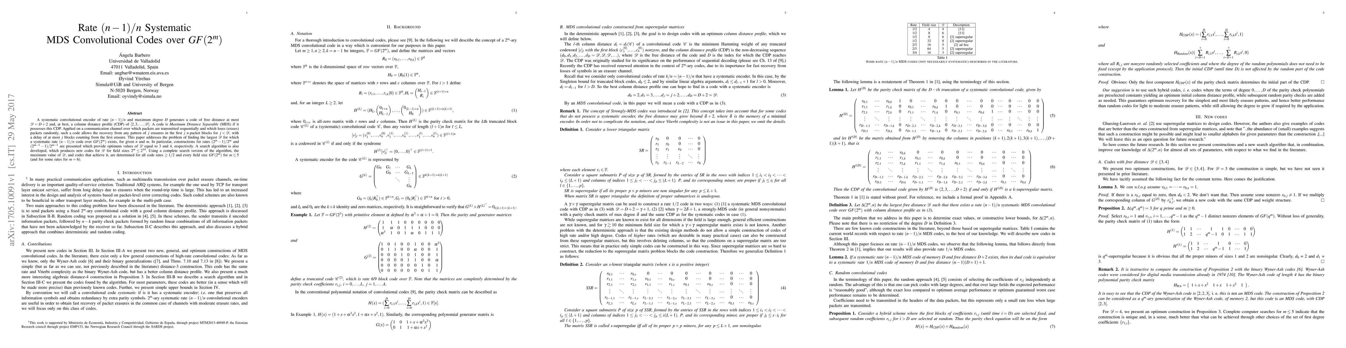 A systematic convolutional encoder of rate $(n-1)/n$ and maximum degree $D$ generates a code of free distance at most ${\cal D} = D+2$ and, at best, a column distance profile (CDP) of $[2,3,\ldots,{\cal D}]$. A code is \emph{Maximum Distance Separable} (MDS) if it possesses this CDP. Applied on a communication channel over which packets are transmitted sequentially and which loses (erases) packets randomly, such a code allows the recovery from any pattern of $j$ erasures in the first $j$ $n$-packet blocks for $j<{\cal D}$, with a delay of at most $j$ blocks counting from the first erasure. This paper addresses the problem of finding the largest ${\cal D}$ for which a systematic rate $(n-1)/n$ code over $GF(2^m)$ exists, for given $n$ and $m$. In particular, constructions for rates $(2^m-1)/2^m$ and $(2^{m-1}-1)/2^{m-1}$ are presented which provide optimum values of ${\cal D}$ equal to 3 and 4, respectively. A search algorithm is also developed, which produces new codes for ${\cal D}$ for field sizes $2^m \leq 2^{14}$. Using a complete search version of the algorithm, the maximum value of ${\cal D}$, and codes that achieve it, are determined for all code rates $\geq 1/2$ and every field size $GF(2^m)$ for $m\leq 5$ (and for some rates for $m=6$).