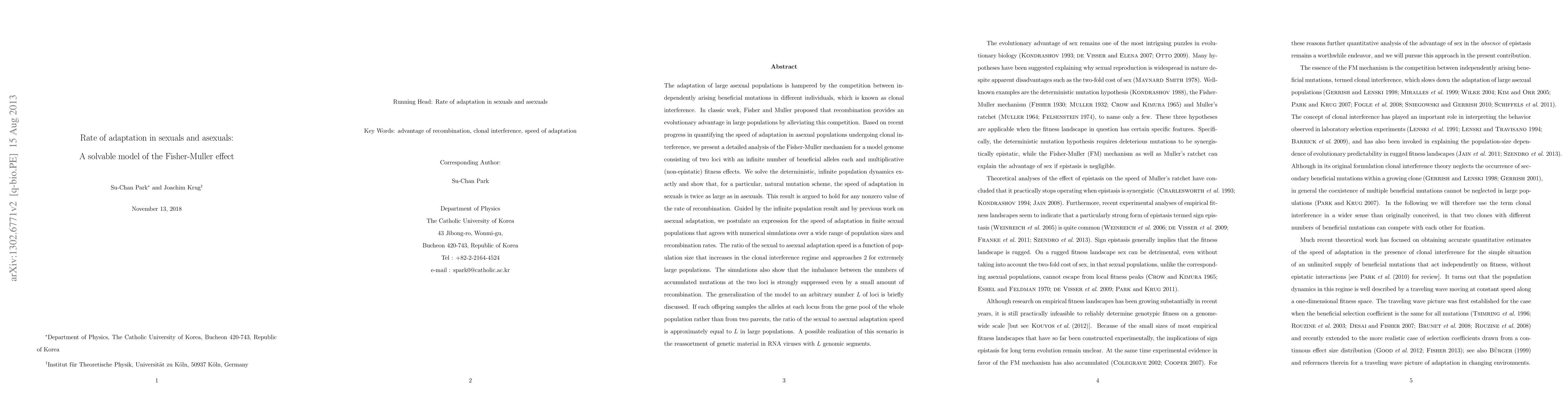 This paper analyzes the Fisher-Muller effect, demonstrating that recombination in sexual populations doubles the rate of adaptation compared to asexual populations, especially under clonal interference. The study provides an exact solution for a model genome with two loci and proposes a formula for adaptation speed in finite sexual populations that aligns with simulations.