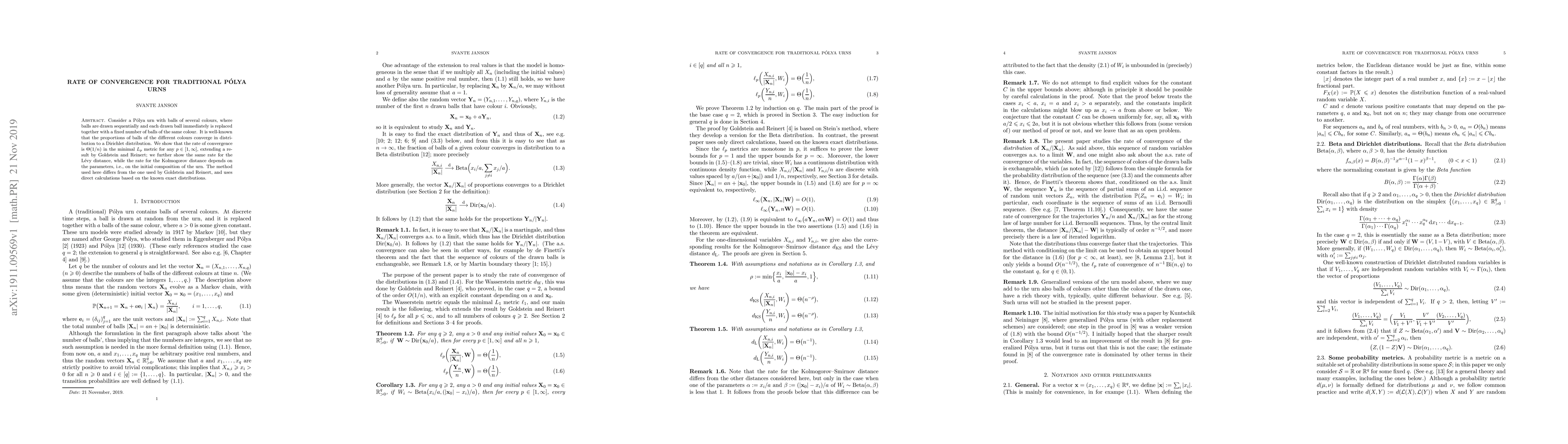 The rate of convergence for traditional Polya urns is found to be $ heta(1/n)$ in the minimal $L_p$ metric, extending a previous result, with similar rates for Lévy distance but varying for Kolmogorov distance.