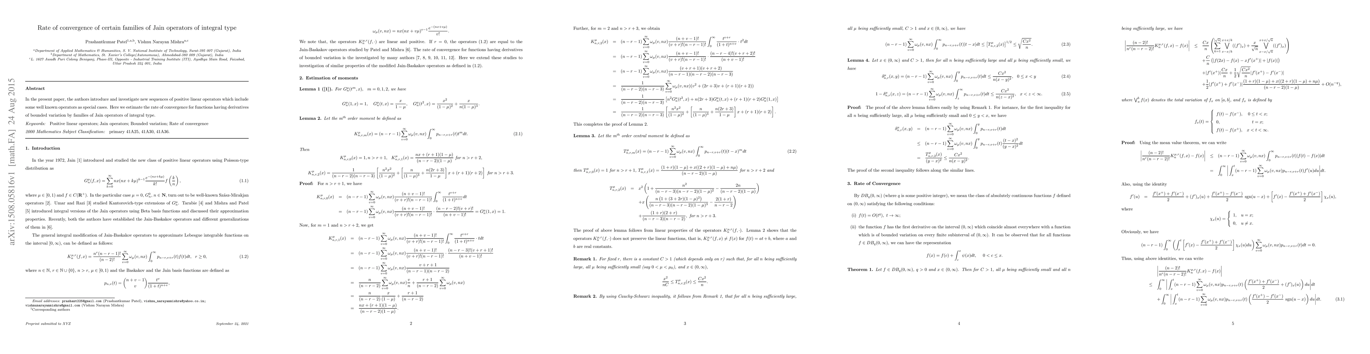 Researchers investigate a new sequence of linear operators that converge at an estimated rate for functions with derivatives of bounded variation, building on well-known operators as special cases.