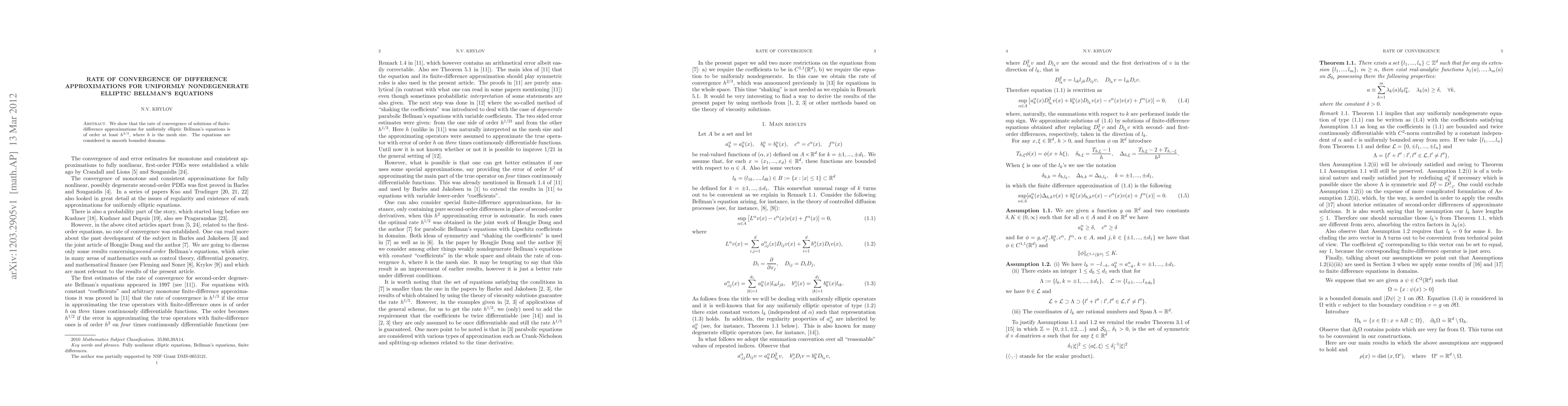 Summary: This paper demonstrates that finite-difference approximations for uniformly elliptic Bellman's equations converge at a rate of at least $h^{2/3}$, where $h$ is the mesh size, in smooth bounded domains. The findings highlight the efficiency of these approximations.