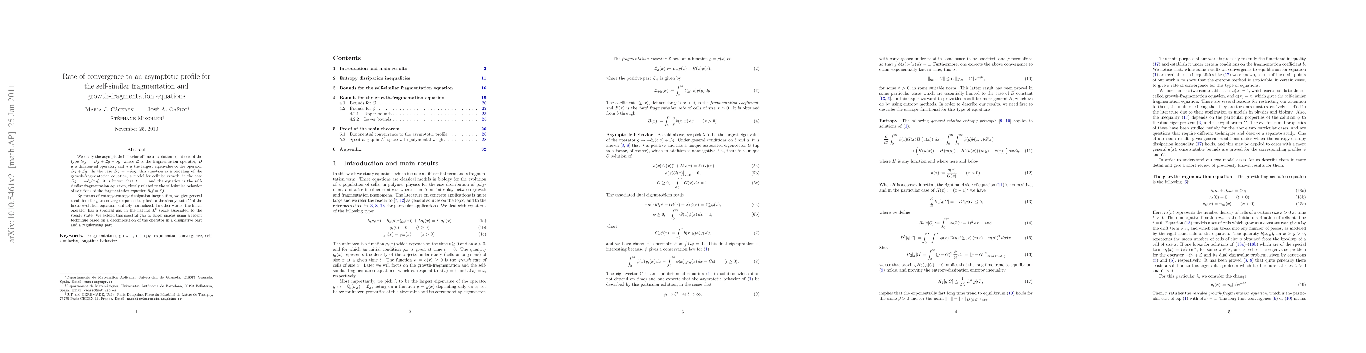 This paper investigates the rate of convergence to an asymptotic profile for linear evolution equations involving fragmentation and growth-fragmentation processes. Using entropy-dissipation inequalities, it establishes conditions for exponential convergence to a steady state under various fragmentation coefficients, proving the convergence for both self-similar fragmentation and growth-fragmentation models.