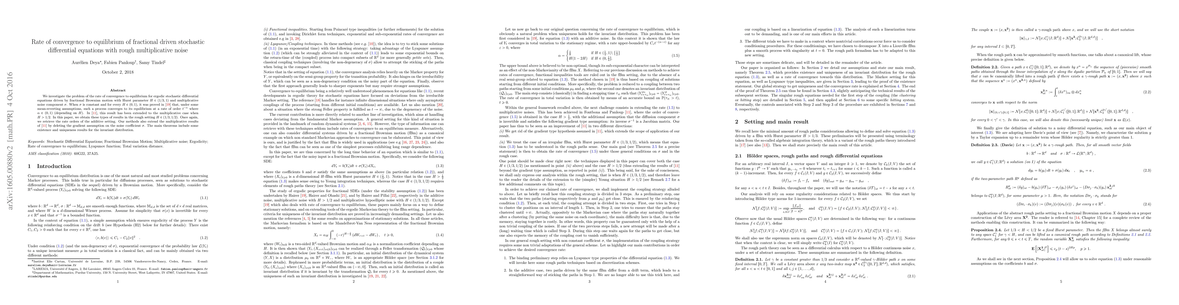 This paper studies the rate of convergence to equilibrium for fractional driven stochastic differential equations with rough multiplicative noise, proving convergence rates in the range $H \in (1/3, 1/2)$ without requiring gradient assumptions. It extends previous results and includes existence and uniqueness of the invariant distribution.
