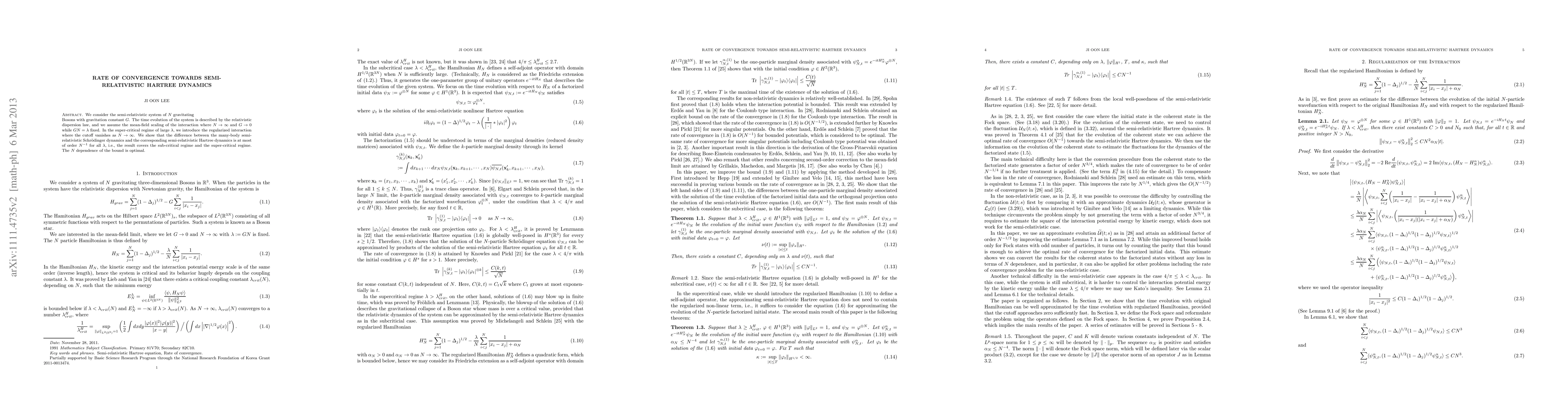 This paper investigates the convergence rate of semi-relativistic many-body Schrödinger dynamics to semi-relativistic Hartree dynamics for a system of $N$ gravitating bosons. It demonstrates that the difference between the two dynamics is of order $N^{-1}$ for all values of the fixed parameter $\lambda$, showing optimal $N$ dependence.