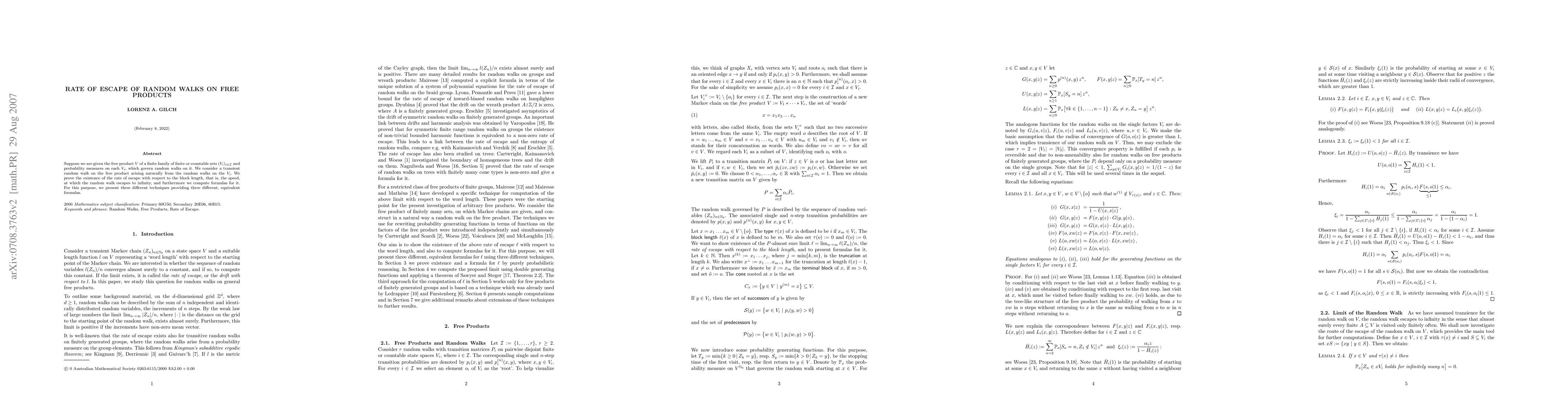 This research paper studies a transient random walk on the free product of finite sets with probability measures, showing the existence and computation of escape rates in terms of block length.