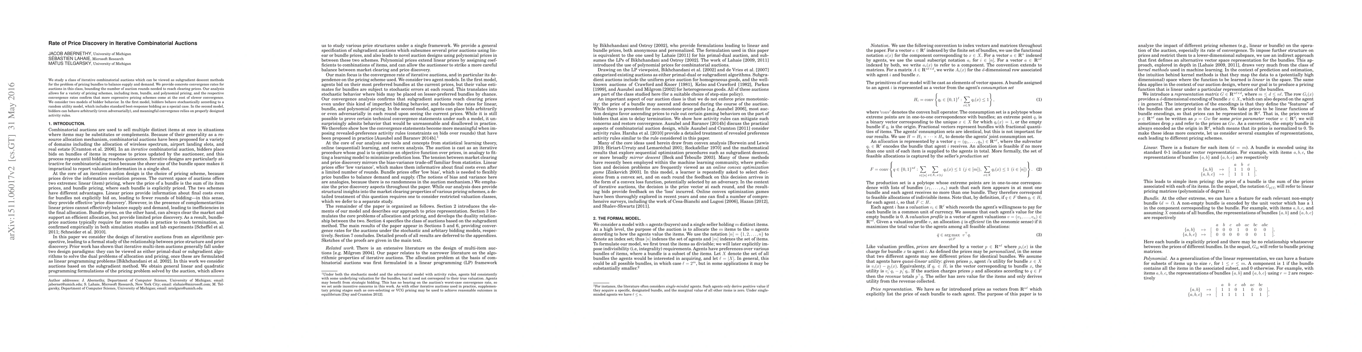 This paper investigates iterative combinatorial auctions as subgradient descent methods for pricing bundles to balance supply and demand, providing concrete convergence rates for auction rounds to reach clearing prices. It shows that more expressive pricing schemes lead to slower convergence, and analyzes bidder behavior under stochastic and arbitrary models, emphasizing the role of activity rules in meaningful convergence.