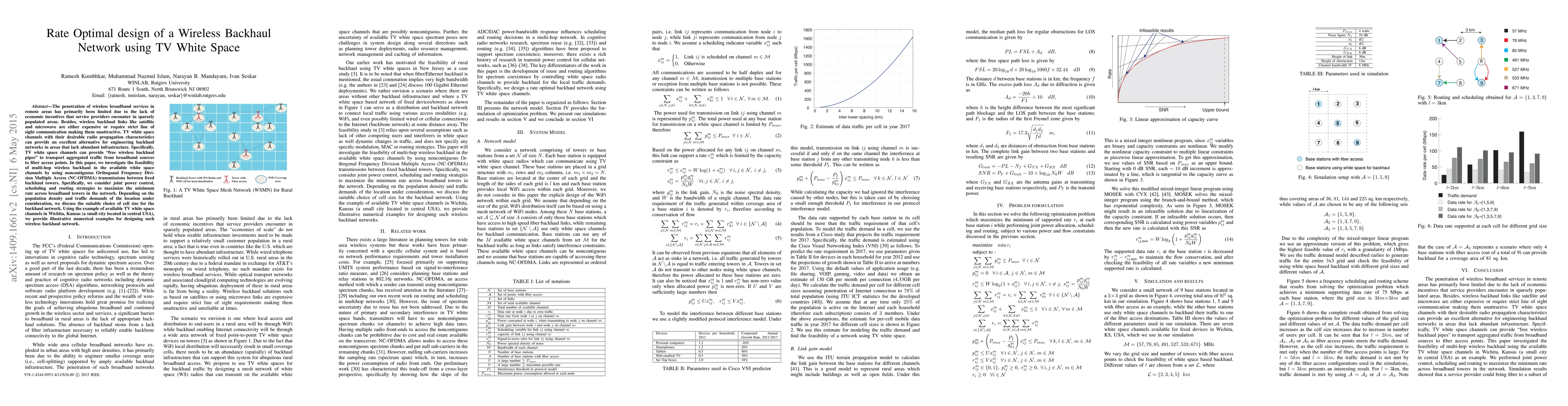 This paper explores the design of cost-effective wireless backhaul networks using TV white space channels, proposing noncontiguous OFDMA for multi-hop transmissions. It investigates joint power control, scheduling, and routing strategies to optimize network performance based on population density and traffic demands, illustrated with examples from Wichita, Kansas.
