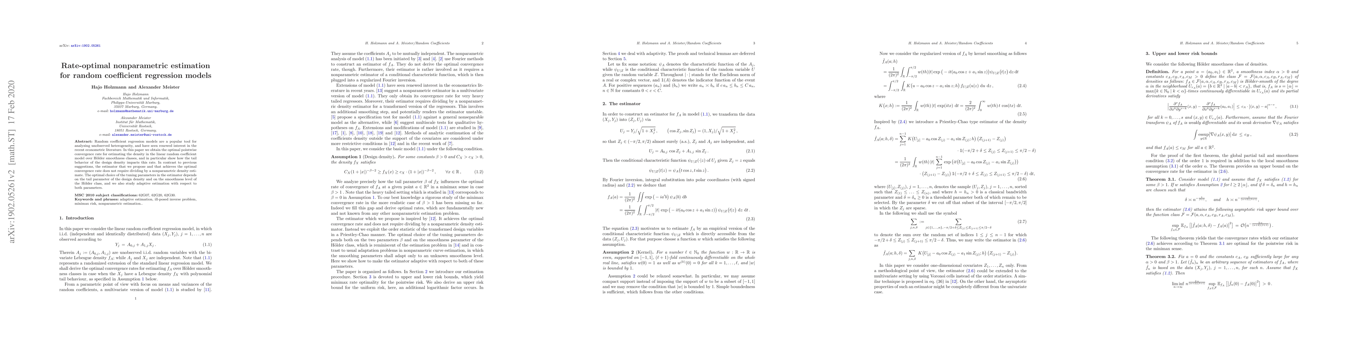 This paper develops an optimal estimator for the density in linear random coefficient regression models over H\"older smoothness classes, demonstrating that the tail behavior of the design density influences the convergence rate. Unlike previous methods, the proposed estimator does not require dividing by a nonparametric density estimate, and its tuning parameters depend on the design density's tail parameter and the smoothness level.