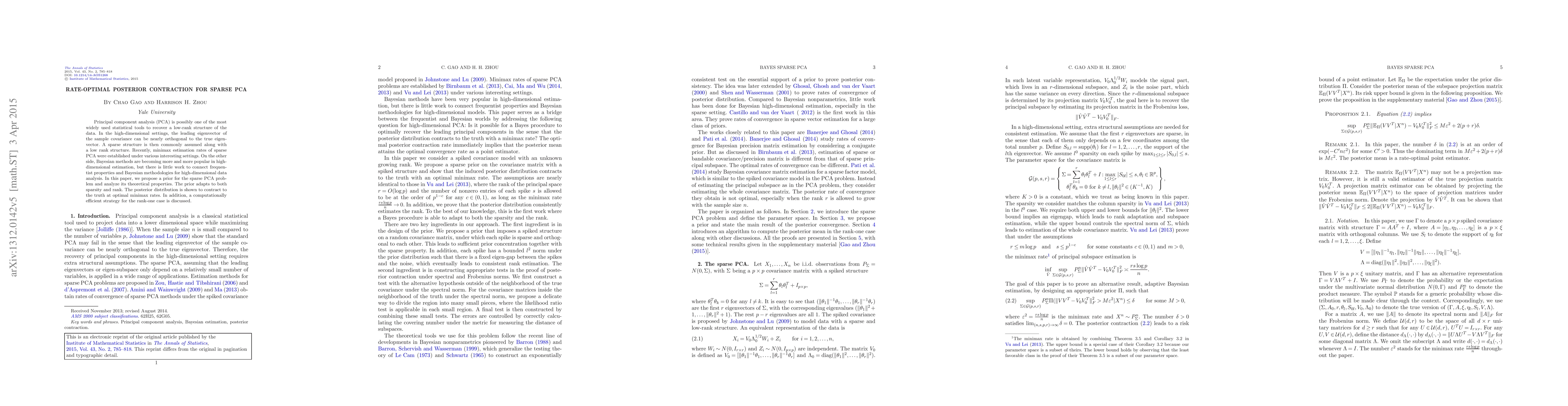 Principal component analysis (PCA) is possibly one of the most widely used statistical tools to recover a low-rank structure of the data. In the high-dimensional settings, the leading eigenvector of the sample covariance can be nearly orthogonal to the true eigenvector. A sparse structure is then commonly assumed along with a low rank structure. Recently, minimax estimation rates of sparse PCA were established under various interesting settings. On the other side, Bayesian methods are becoming more and more popular in high-dimensional estimation, but there is little work to connect frequentist properties and Bayesian methodologies for high-dimensional data analysis. In this paper, we propose a prior for the sparse PCA problem and analyze its theoretical properties. The prior adapts to both sparsity and rank. The posterior distribution is shown to contract to the truth at optimal minimax rates. In addition, a computationally efficient strategy for the rank-one case is discussed.