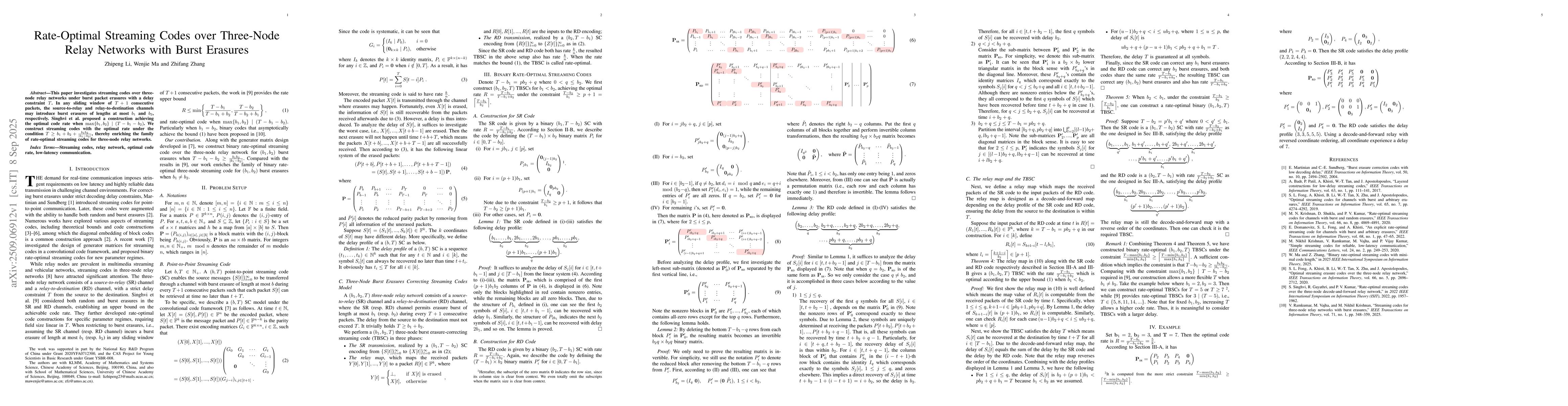 This paper investigates streaming codes over three-node relay networks under burst packet erasures with a delay constraint $T$. In any sliding window of $T+1$ consecutive packets, the source-to-relay and relay-to-destination channels may introduce burst erasures of lengths at most $b_1$ and $b_2$, respectively. Singhvi et al. proposed a construction achieving the optimal code rate when $\max\{b_1,b_2\}\mid (T-b_1-b_2)$. We construct streaming codes with the optimal rate under the condition $T\geq b_1+b_2+\frac{b_1b_2}{|b_1-b_2|}$, thereby enriching the family of rate-optimal streaming codes for three-node relay networks.