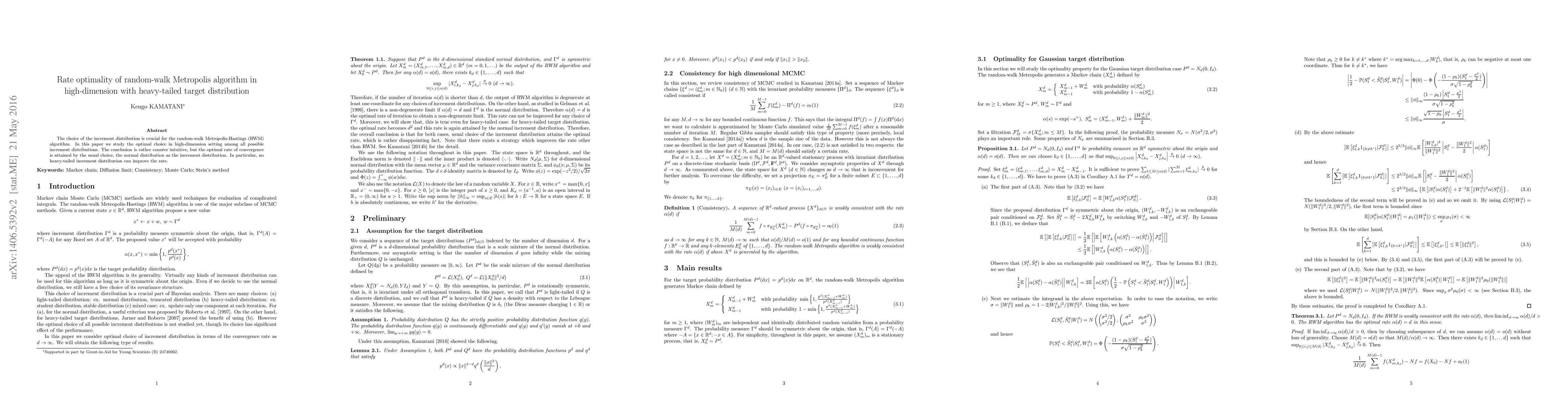 The choice of the increment distribution is crucial for the random-walk Metropolis-Hastings (RWM) algorithm. In this paper we study the optimal choice in high-dimension setting among all possible increment distributions. The conclusion is rather counter intuitive, but the optimal rate of convergence is attained by the usual choice, the normal distribution as the increment distribution. In particular, no heavy-tailed increment distribution can improve the rate.