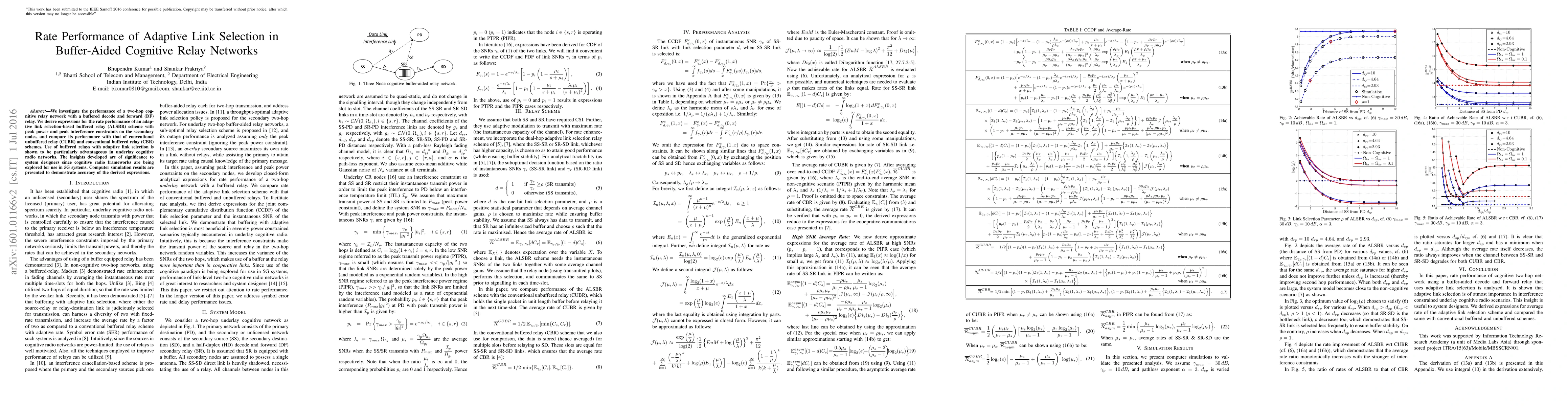 This paper evaluates the rate performance of adaptive link selection in buffer-aided cognitive relay networks under peak power and interference constraints, demonstrating superior performance compared to conventional relaying methods. The findings are crucial for designing 5G systems utilizing cognitive radio frameworks.