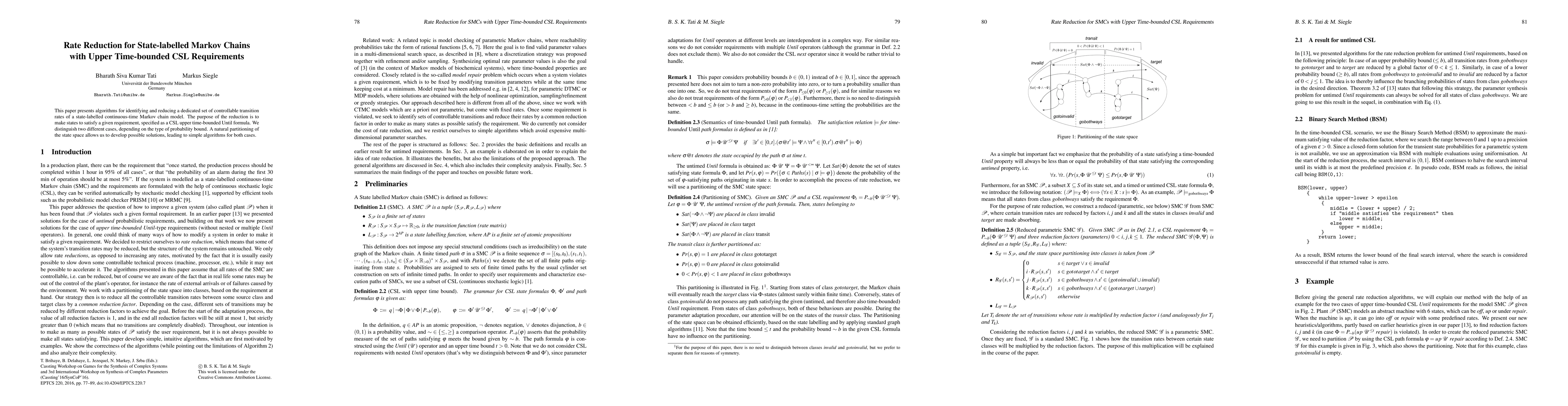 Researchers developed algorithms to reduce transition rates in state-labelled Markov chains that meet specific CSL requirements, aiming to satisfy given Until formulas.