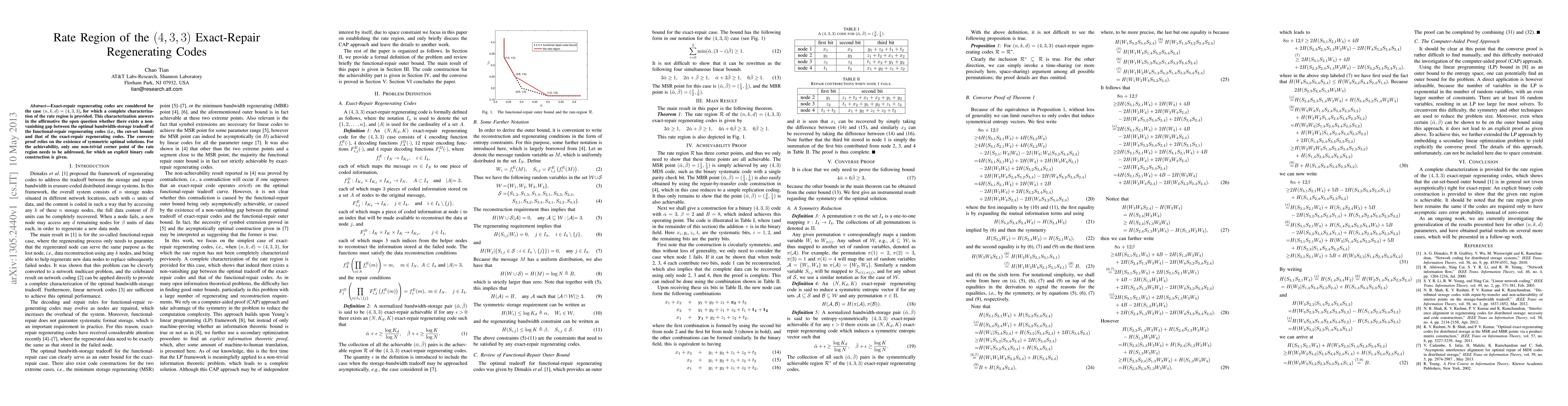 This paper characterizes the rate region of (4,3,3) exact-repair regenerating codes, confirming the existence of a non-vanishing gap between the optimal bandwidth-storage tradeoff of functional-repair and exact-repair codes. An explicit binary code construction is provided to achieve one corner point of the rate region.
