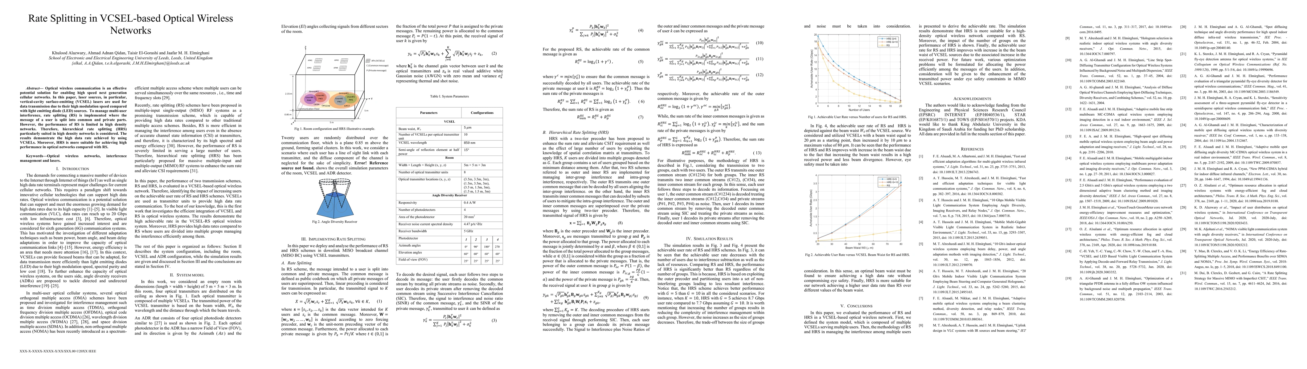 This paper explores the use of vertical-cavity surface-emitting lasers (VCSELs) for high-speed optical wireless communication, implementing rate splitting to manage multi-user interference. Hierarchical rate splitting (HRS) is proposed for high-density networks, demonstrating superior performance and higher data rates compared to traditional rate splitting.