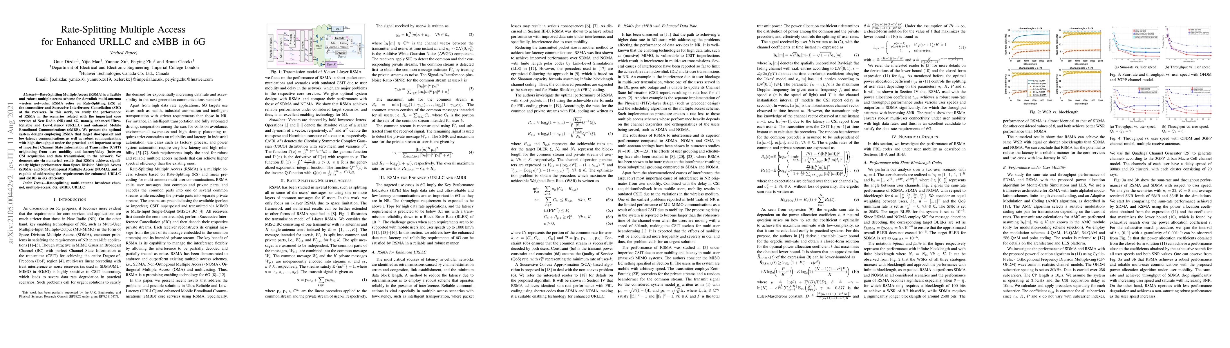 This paper investigates the performance of Rate-Splitting Multiple Access (RSMA) for 6G networks, focusing on enhanced Ultra-Reliable and Low-Latency Communications (URLLC) and enhanced Mobile Broadband Communications (eMBB). RSMA outperforms Space Division Multiple Access (SDMA) and Non-Orthogonal Multiple Access (NOMA) in practical scenarios with imperfect Channel State Information at Transmitter (CSIT).