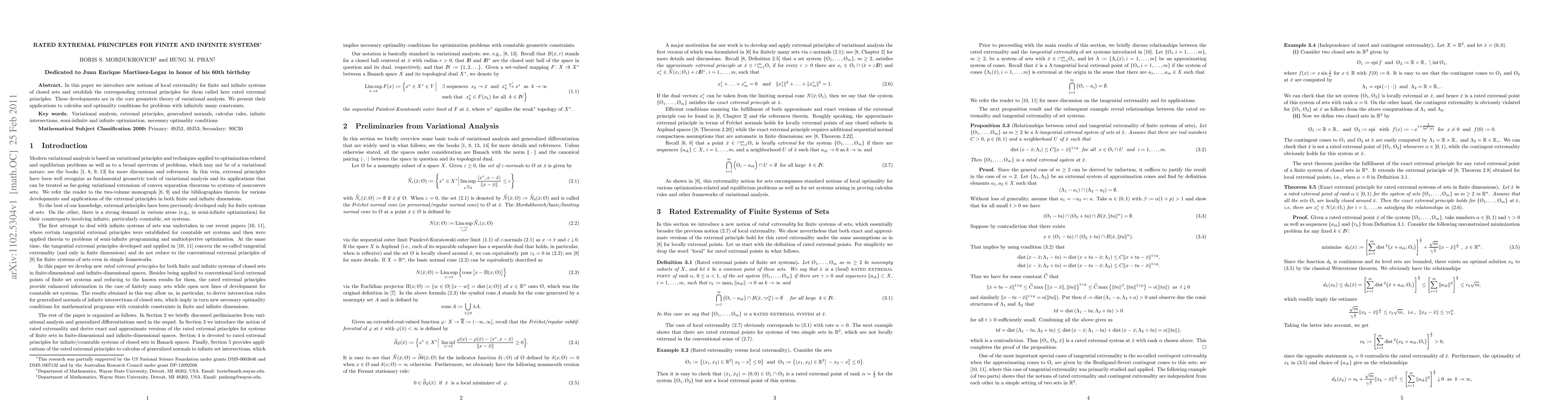 This paper introduces new rated extremal principles for both finite and infinite systems of closed sets, establishing their significance within variational analysis and applying them to calculus and optimality conditions for problems with infinitely many constraints.