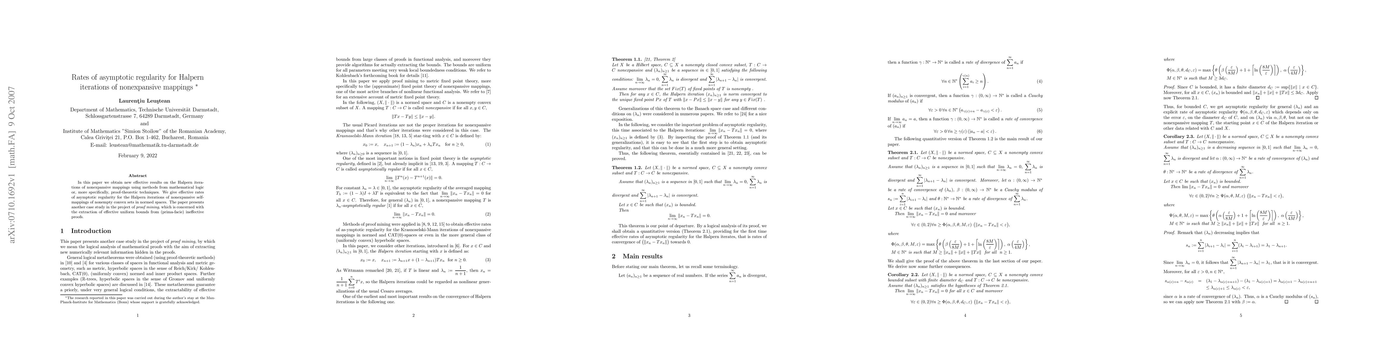 In this paper we obtain new effective results on the Halpern iterations of nonexpansive mappings using methods from mathematical logic or, more specifically, proof-theoretic techniques. We give effective rates of asymptotic regularity for the Halpern iterations of nonexpansive self-mappings of nonempty convex sets in normed spaces. The paper presents another case study in the project of {\em proof mining}, which is concerned with the extraction of effective uniform bounds from (prima-facie) ineffective proofs.