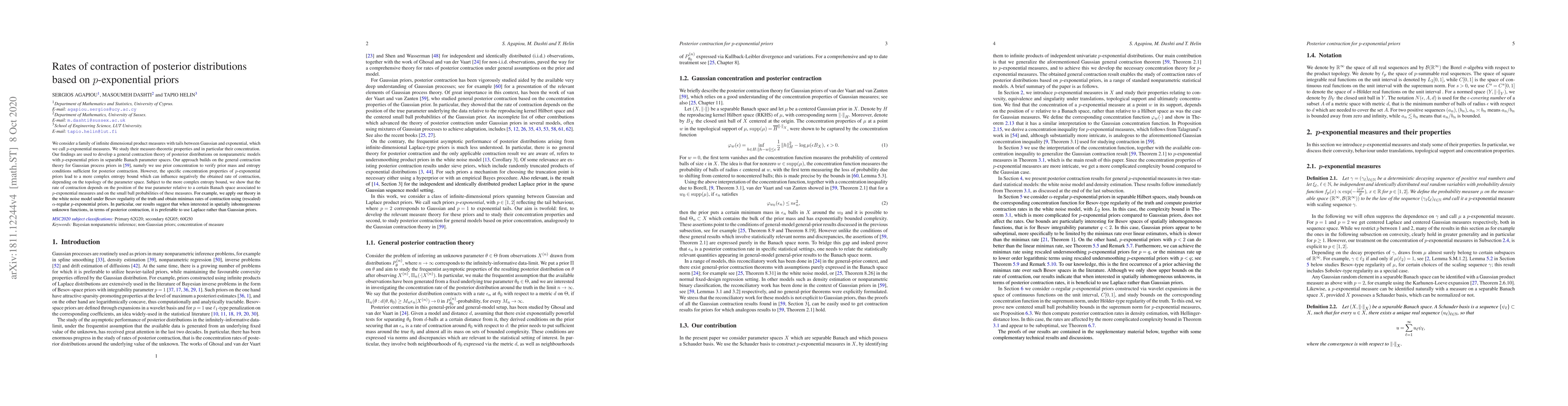 This paper develops a contraction theory for posterior distributions based on $p$-exponential priors in nonparametric models. It finds that the rate of contraction depends on the true parameter's position relative to a Banach space and the small ball probabilities of $p$-exponential measures, suggesting Laplace priors may be preferable for spatially inhomogeneous functions.