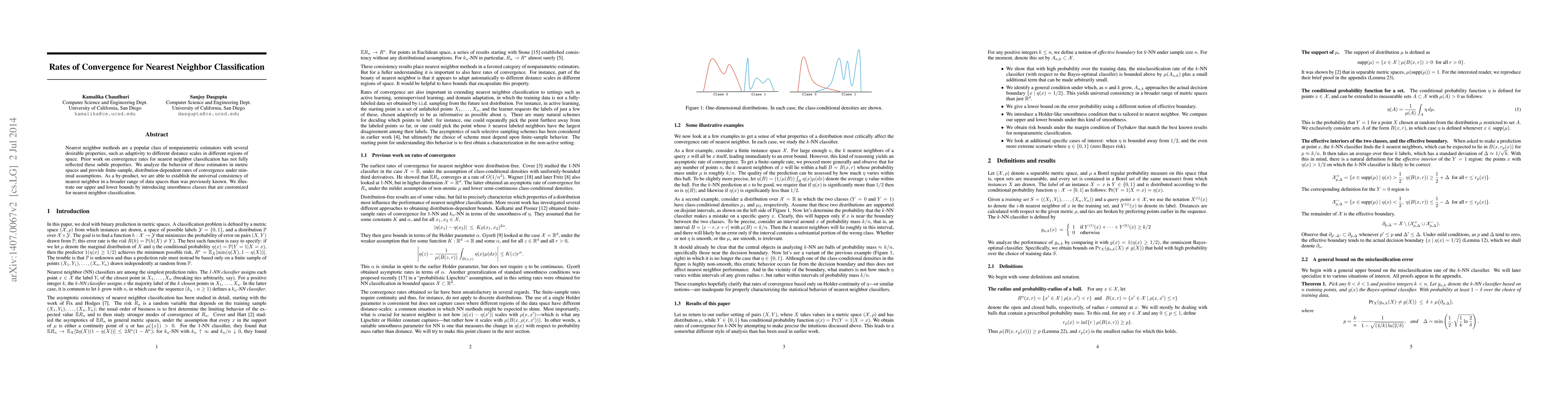 Nearest neighbor methods are a popular class of nonparametric estimators with several desirable properties, such as adaptivity to different distance scales in different regions of space. Prior work on convergence rates for nearest neighbor classification has not fully reflected these subtle properties. We analyze the behavior of these estimators in metric spaces and provide finite-sample, distribution-dependent rates of convergence under minimal assumptions. As a by-product, we are able to establish the universal consistency of nearest neighbor in a broader range of data spaces than was previously known. We illustrate our upper and lower bounds by introducing smoothness classes that are customized for nearest neighbor classification.