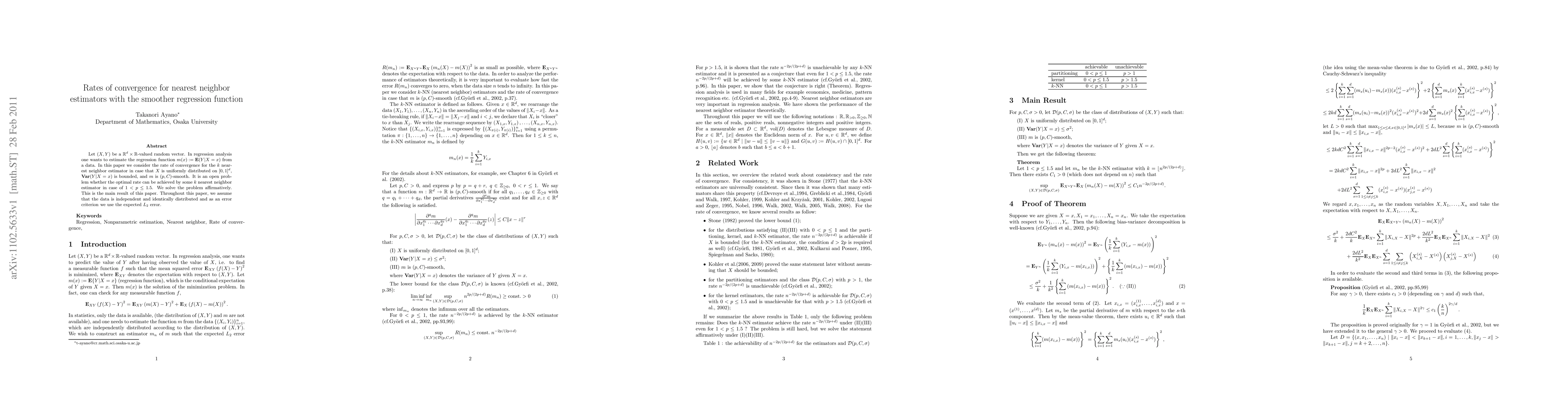 In regression analysis one wants to estimate the regression function from a data. In this paper we consider the rate of convergence for the nearest neighbor estimator in case that the regression function is $(p,C)$-smooth. It is an open problem whether the optimal rate can be achieved by some nearest neighbor estimator in case that $p$ is on (1,1.5]. We solve the problem affirmatively. This is the main result of this paper. Throughout this paper, we assume that the data is independent and identically distributed and as an error criterion we use the expected $L_2$ error.