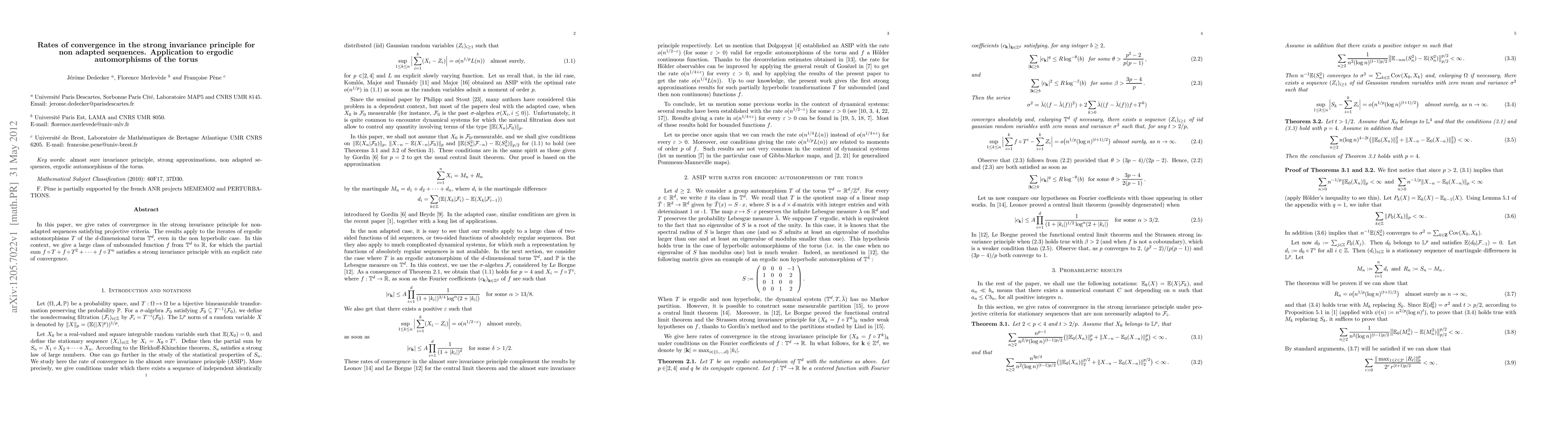 This paper establishes rates of convergence in the strong invariance principle for non-adapted sequences under projective criteria, applying specifically to iterates of ergodic automorphisms on the d-dimensional torus, including non-hyperbolic cases, with explicit convergence rates for a broad class of unbounded functions.