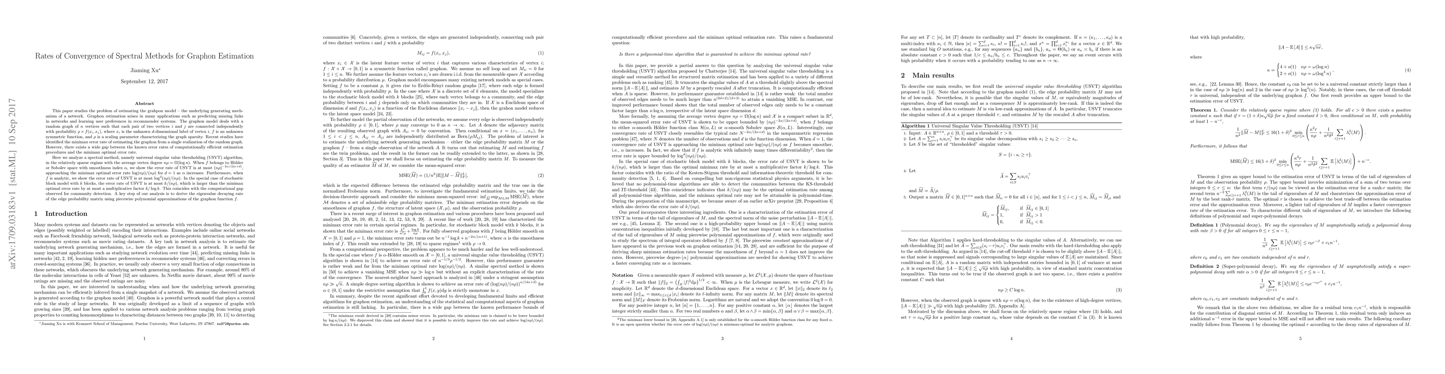 This paper investigates the spectral method, universal singular value thresholding (USVT), for estimating graphon models, showing its convergence rate approaches the minimax optimal error rate under certain smoothness conditions. The analysis reveals a computational gap in the special case of the stochastic block model.