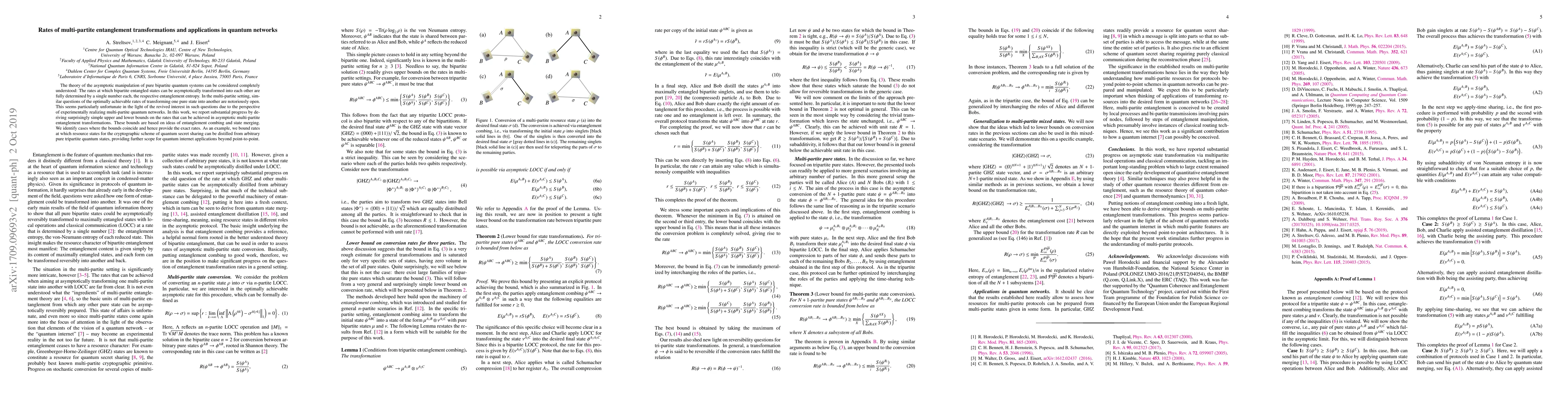 This research paper presents significant advancements in understanding the rates of transforming multi-partite entangled states, offering simple upper and lower bounds based on entanglement combing and state merging. It identifies exact transformation rates for specific cases, particularly in quantum secret sharing, enhancing prospects for quantum network applications.