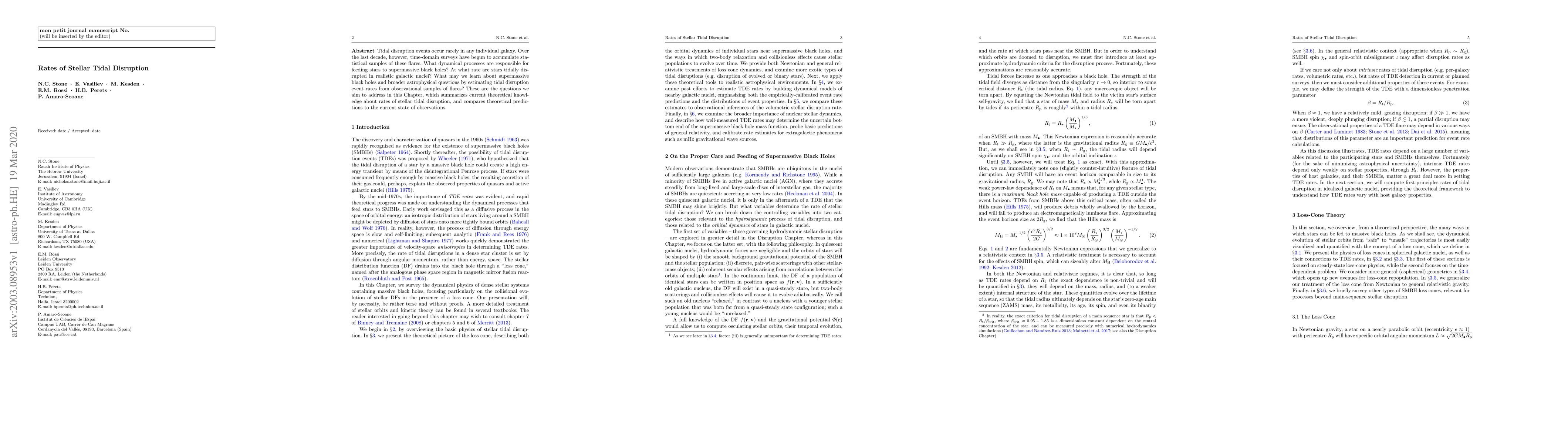 This paper reviews theoretical models of stellar tidal disruption events (TDEs) and compares them to observational data, aiming to determine the rates at which stars are disrupted by supermassive black holes and to understand the underlying dynamical processes. It seeks to answer broader astrophysical questions by estimating TDE rates from current observational samples.