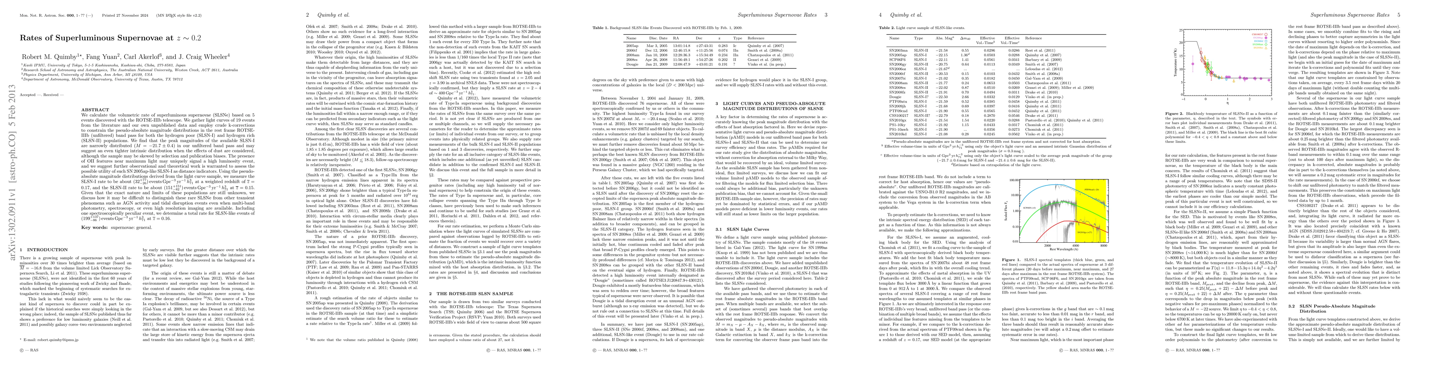 We calculate the volumetric rate of superluminous supernovae (SLSNe) based on 5 events discovered with the ROTSE-IIIb telescope. We gather light curves of 19 events from the literature and our own unpublished data and employ crude k-corrections to constrain the pseudo-absolute magnitude distributions in the rest frame ROTSE-IIIb (unfiltered) band pass for both the hydrogen poor (SLSN-I) and hydrogen rich (SLSN-II) populations. We find that the peak magnitudes of the available SLSN-I are narrowly distributed ($M = -21.7 \pm 0.4$) in our unfiltered band pass and may suggest an even tighter intrinsic distribution when the effects of dust are considered, although the sample may be skewed by selection and publication biases. The presence of OII features near maximum light may uniquely signal a high luminosity event, and we suggest further observational and theoretical work is warranted to assess the possible utility of such SN 2005ap-like SLSN-I as distance indicators. Using the pseudo-absolute magnitude distributions derived from the light curve sample, we measure the SLSN-I rate to be about (32^{+77}_{-26}) events Gpc^{-3} yr^{-1} h_{71}^{3} at a weighted redshift of z = 0.17, and the SLSN-II rate to be about (151^{+151}_{-82}) events Gpc^{-3} yr^{-1} h_{71}^{3} at z = 0.15. Given that the exact nature and limits of these populations are still unknown, we discuss how it may be difficult to distinguish these rare SLSNe from other transient phenomena such as AGN activity and tidal disruption events even when multi-band photometry, spectroscopy, or even high resolution imaging are available. Including one spectroscopically peculiar event, we determine a total rate for SLSN-like events of (199^{+137}_{-86}) events Gpc^{-3} yr^{-1} h_{71}^{3} at z = 0.16.