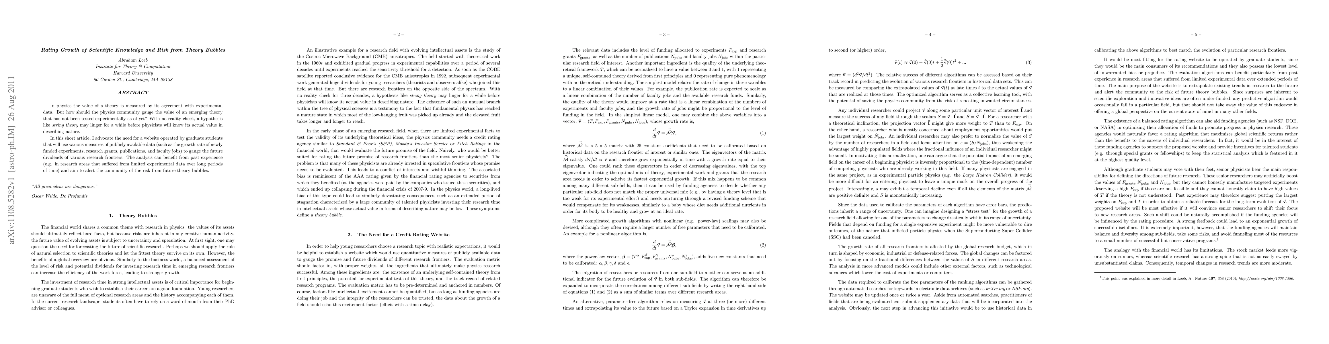 A proposed website would analyze data on emerging research frontiers to gauge their potential value and risk, alerting the physics community to potential theory bubbles.