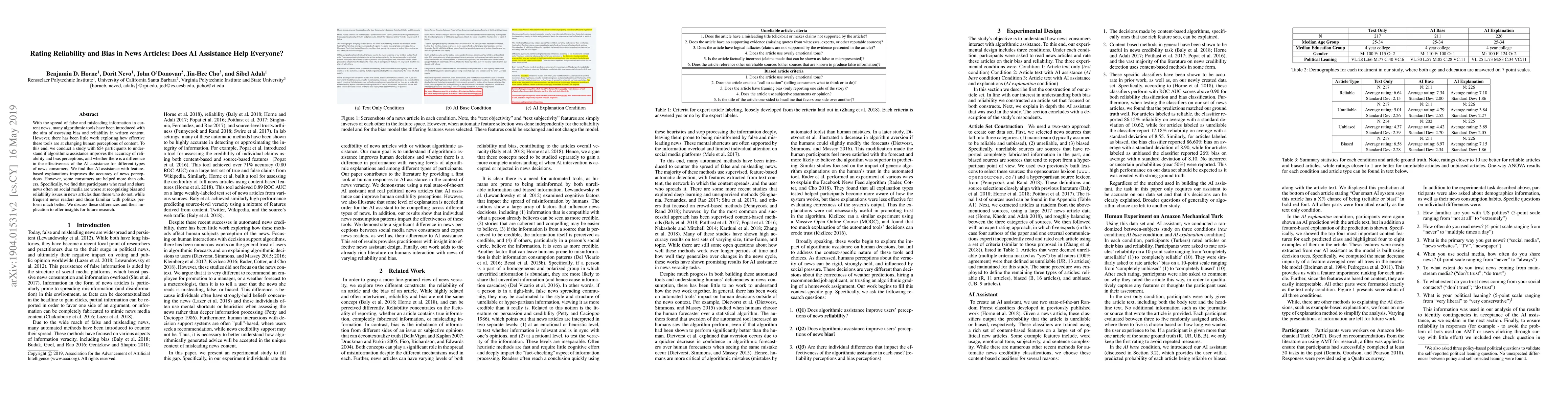 This study investigates whether AI assistance improves the accuracy of people's perceptions of news article reliability and bias. Findings show that AI helps, but its effectiveness varies among different news consumers, with frequent social media users performing worse in recognizing issues compared to non-social media users and politically aware readers.