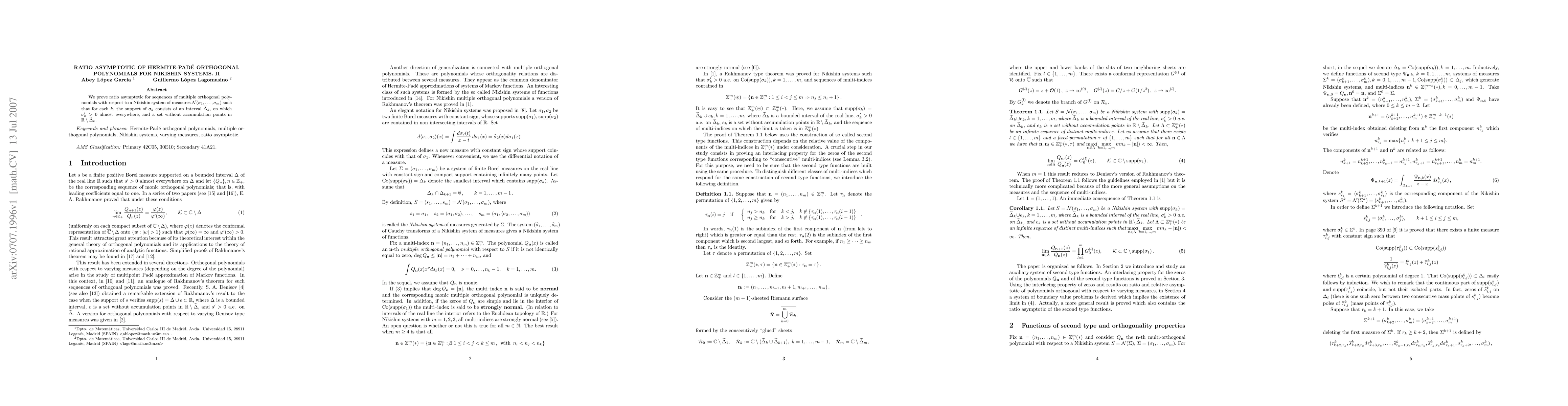 We prove ratio asymptotic for sequences of multiple orthogonal polynomials with respect to a Nikishin system of measures ${\mathcal{N}}(\sigma_1,...,\sigma_m)$ such that for each $k$, the support of $\sigma_k$ consists of an interval $\widetilde{\Delta}_k$, on which $\sigma_k^{\prime} > 0$ almost everywhere, and a set without accumulation points in $\mathbb{R} \setminus \widetilde{\Delta}_k$.