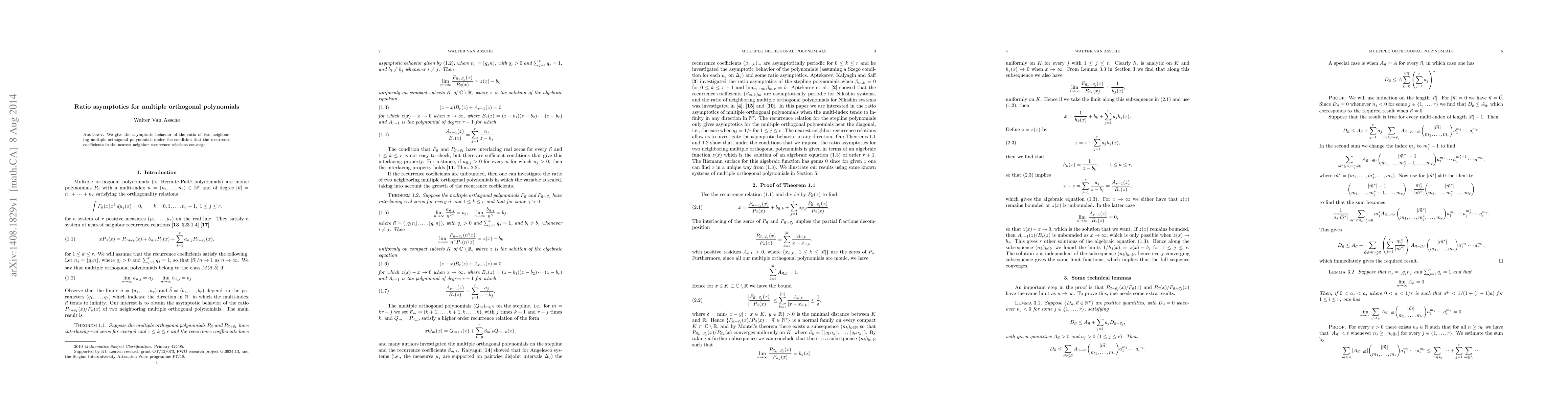 This paper investigates the asymptotic behavior of the ratio of two adjacent multiple orthogonal polynomials when the recurrence coefficients tend to a limit, providing insight into their convergence properties.