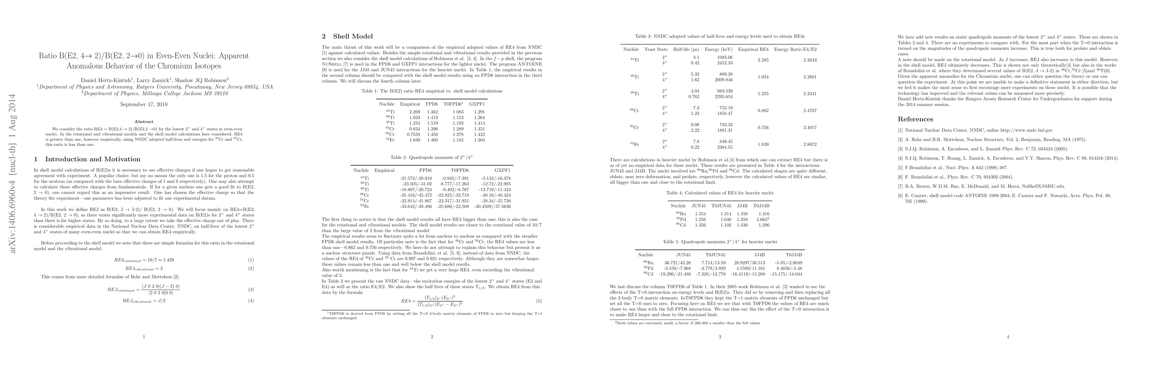 Research on even-even nuclei found an apparent discrepancy between theoretical models and empirical data for a specific nuclear ratio, RE4, in the chromium isotopes.